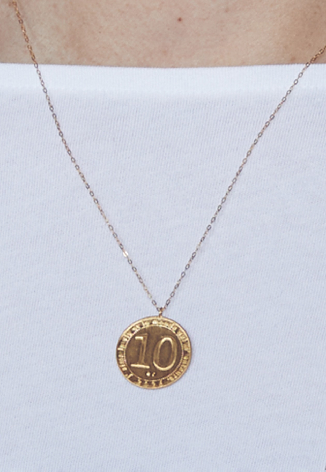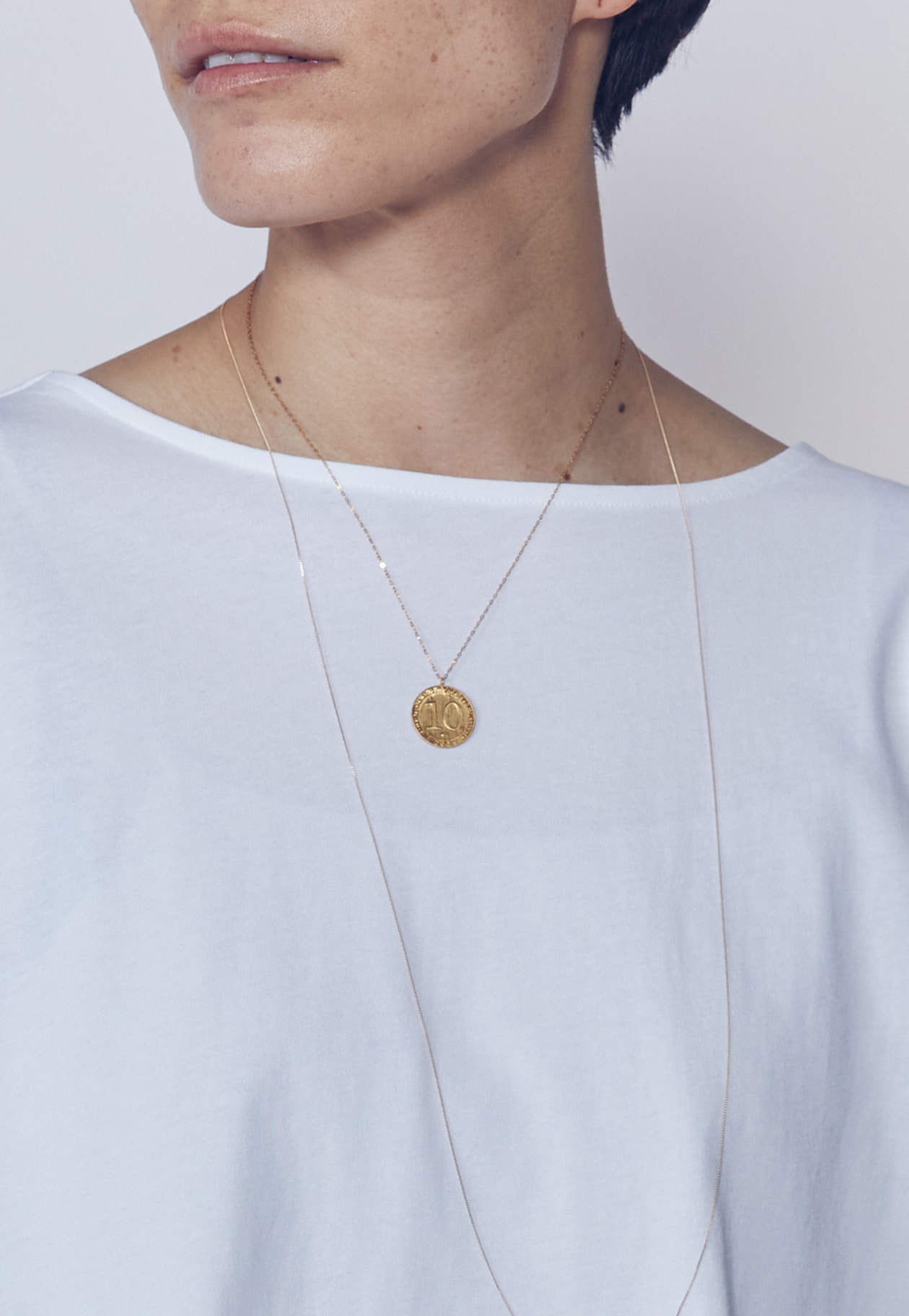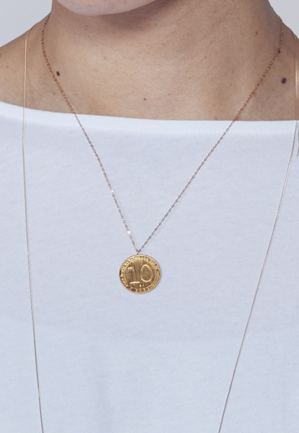 さりげなく節目を刻んだ、今回の別注ならではのコインネックレスです。