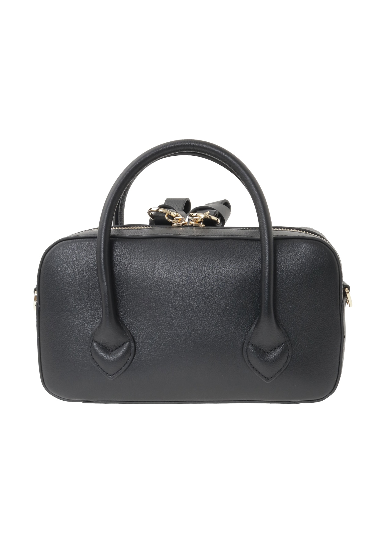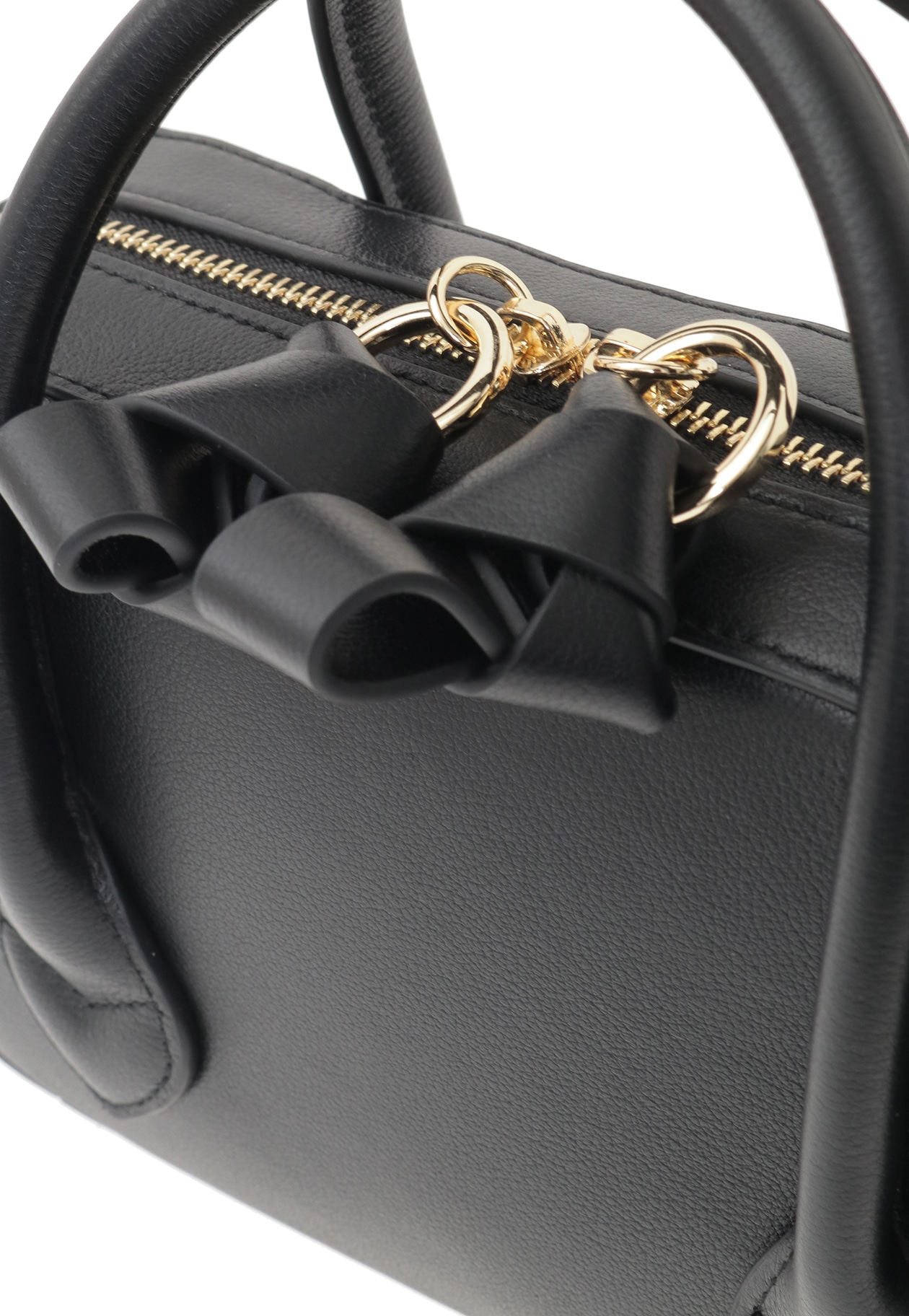 ジップの引手についたリボンモチーフが、シンプルながらもアクセントに。