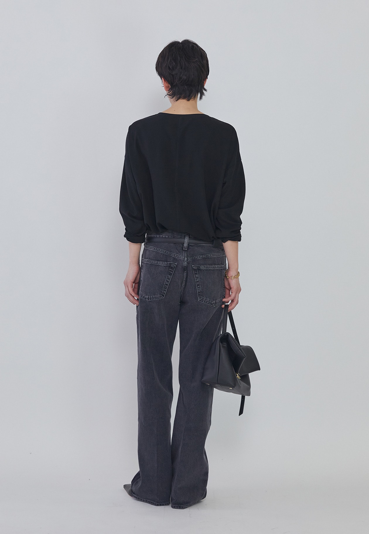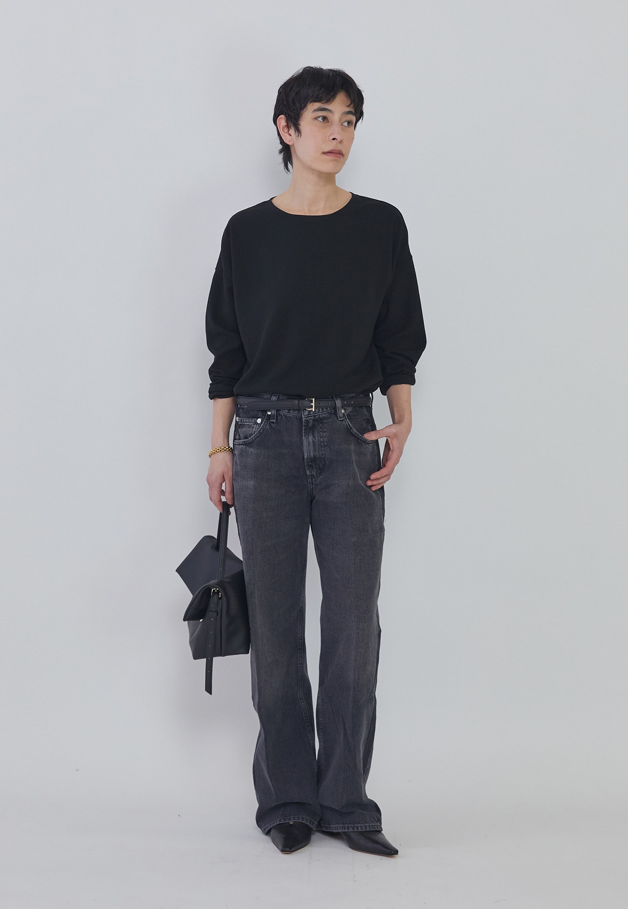 リラックスしたストレートレッグシルエットがさりげない脚長効果と着まわし力を兼ね備えます。