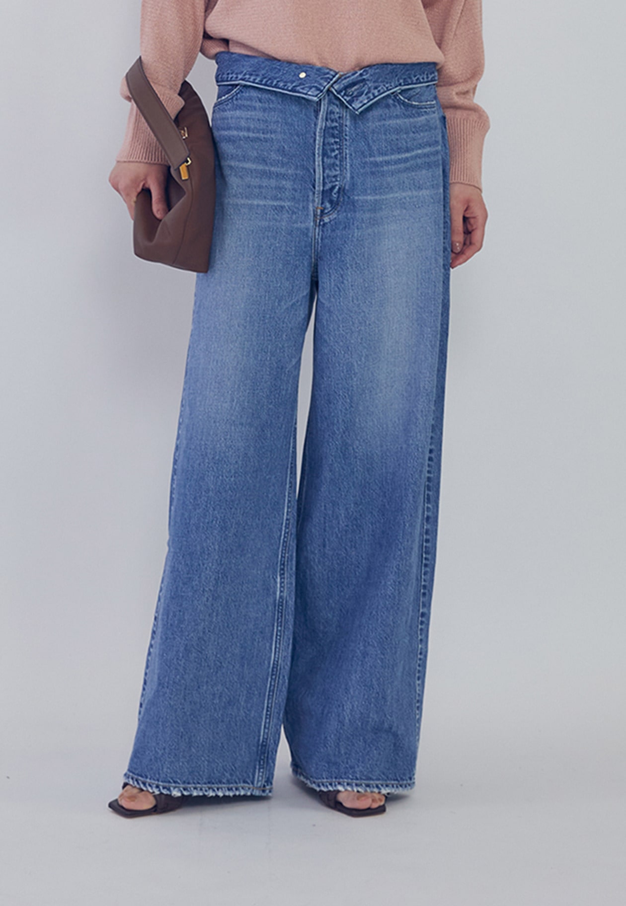 ウエストを折り返して腰まわりにアクセントを付けても着こなせます。