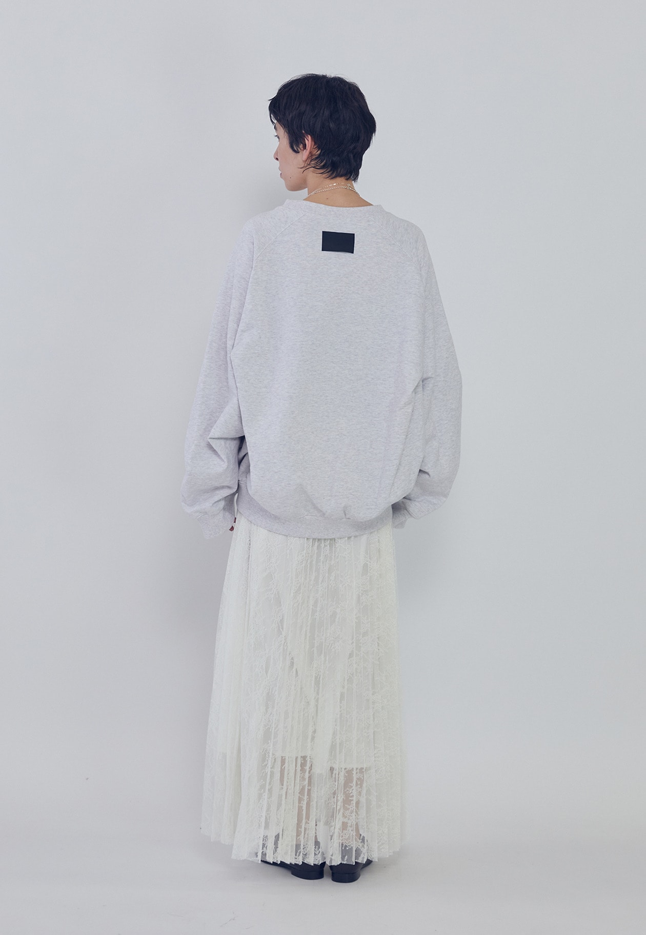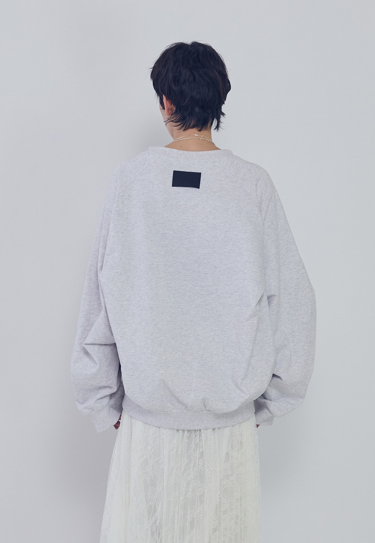 一見シンプルなスウェットながら、構築的なバランスがスタイリングにモードな印象を添える一着です。