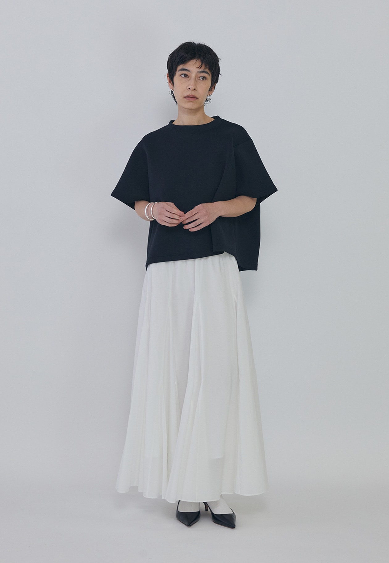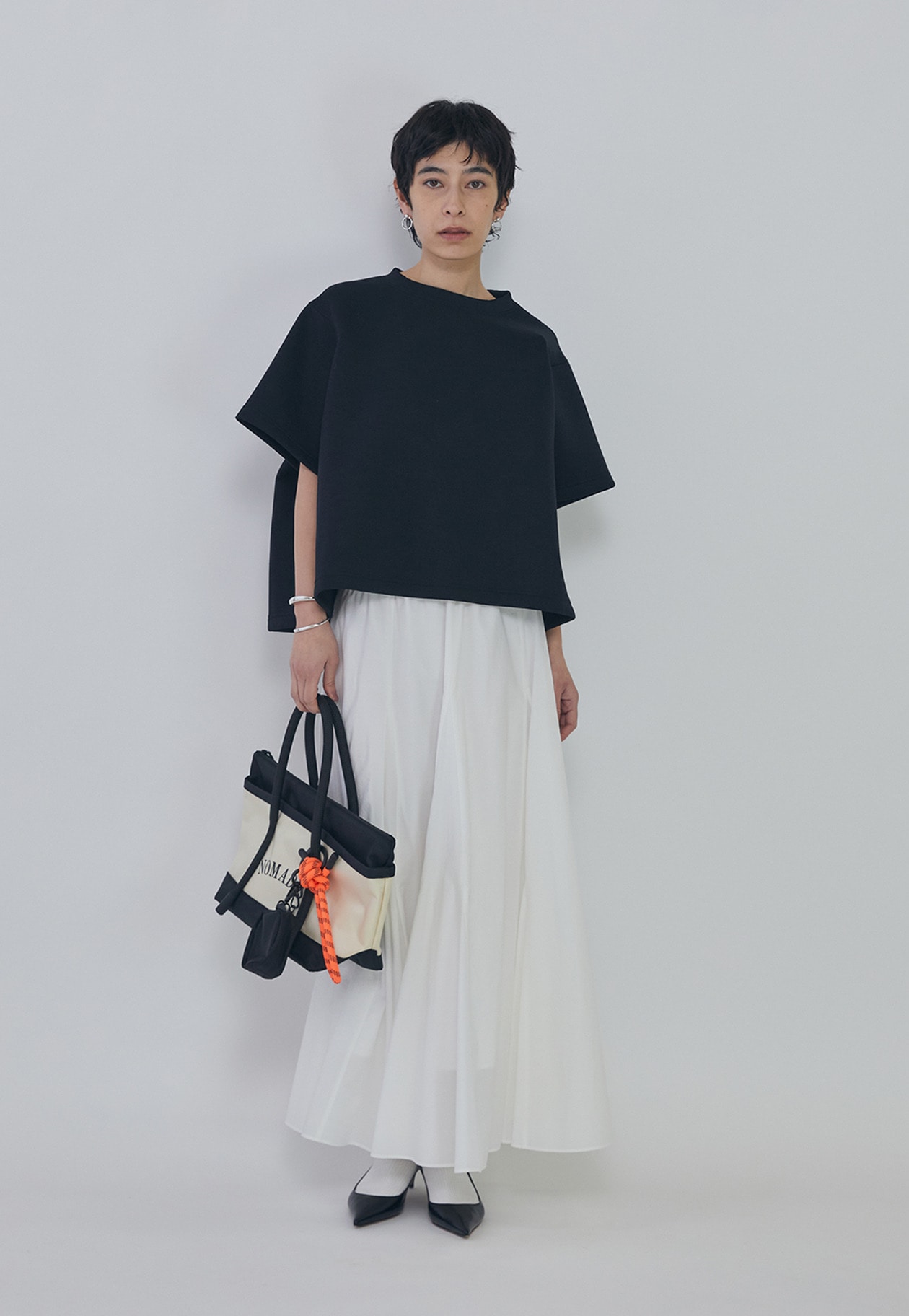 軽やかでボリューム感がありながら、身体にまとわりつかず、動いたときに美しいフォルムが自然に出るのが特長。