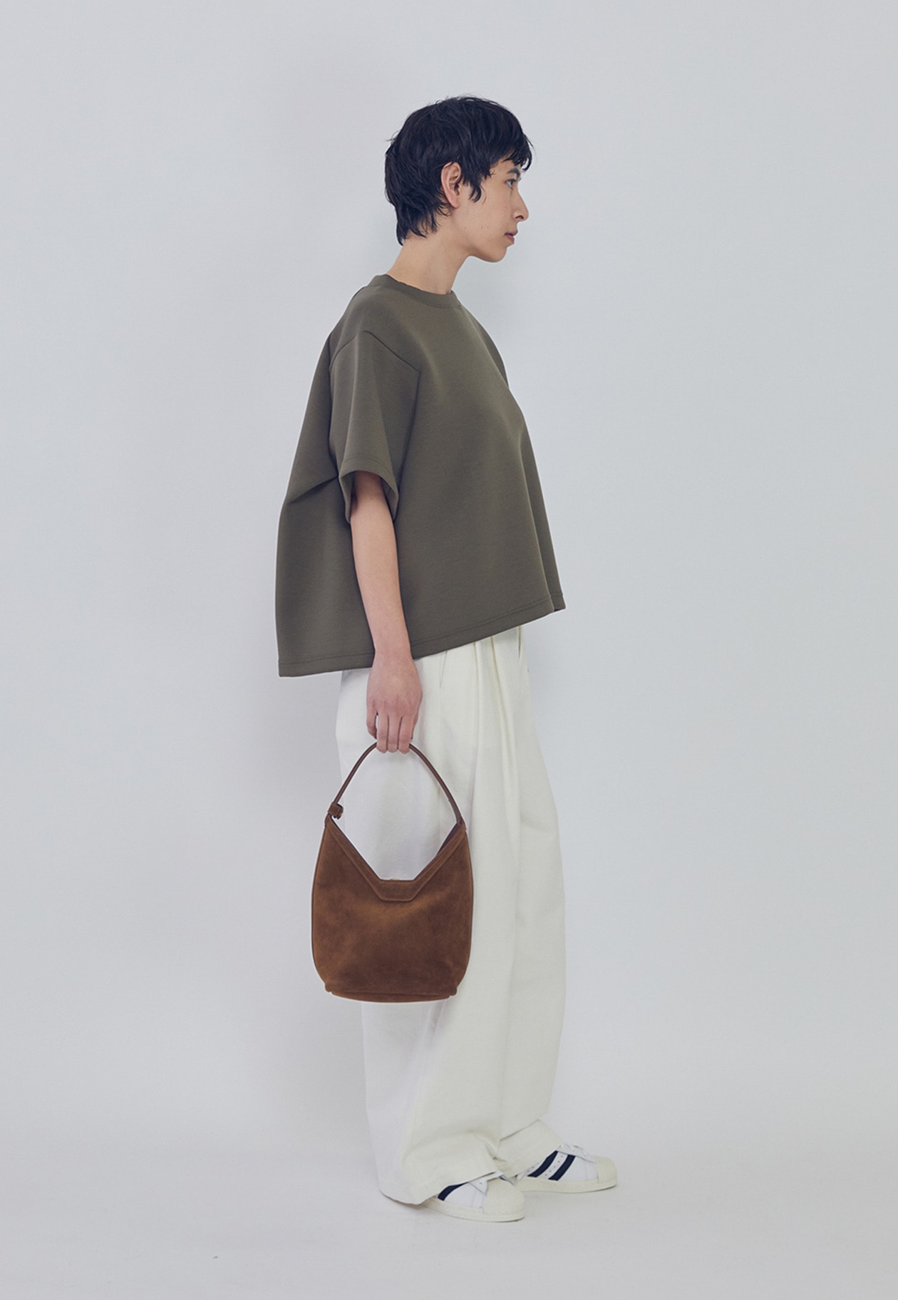 シンプルなデザインでも、素材が生み出す存在感でスタイルを引き締めてくれます。