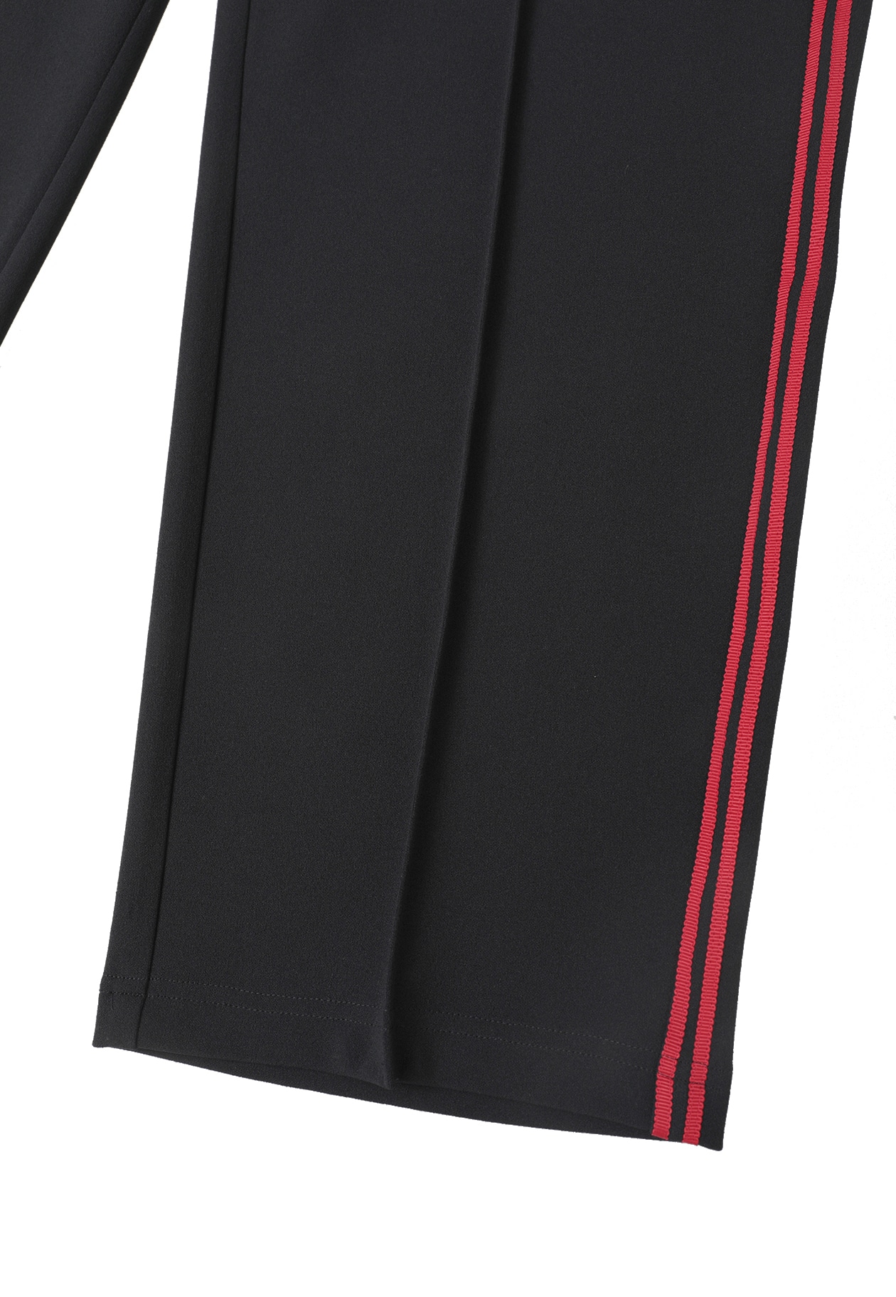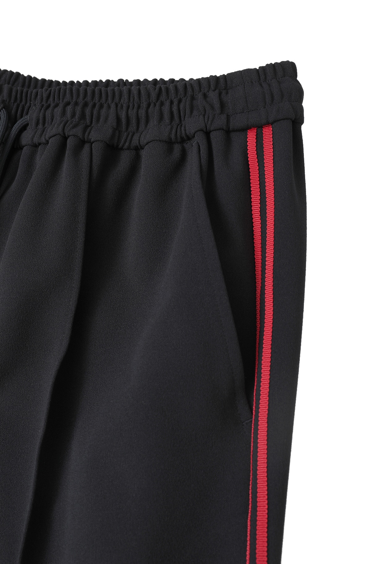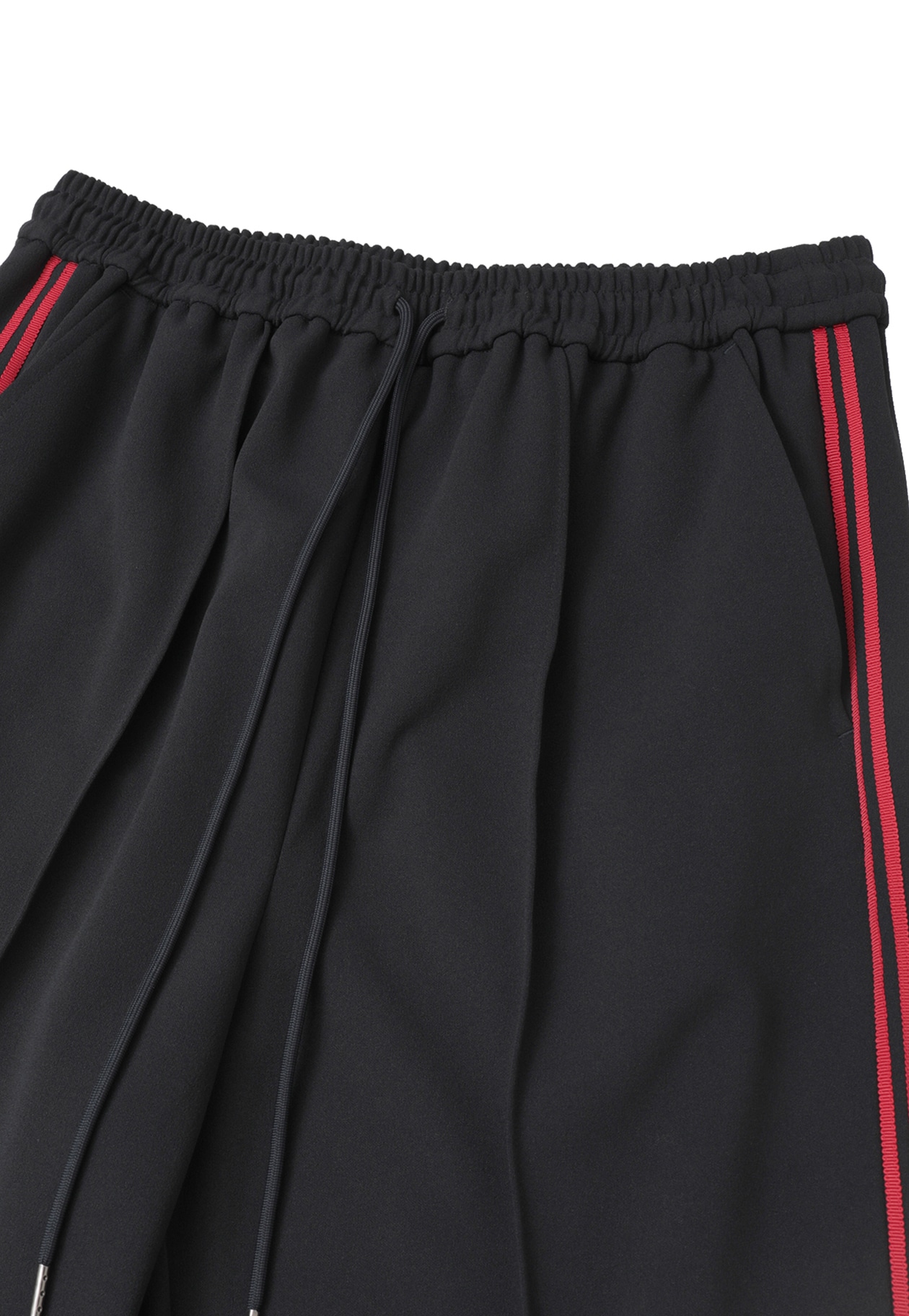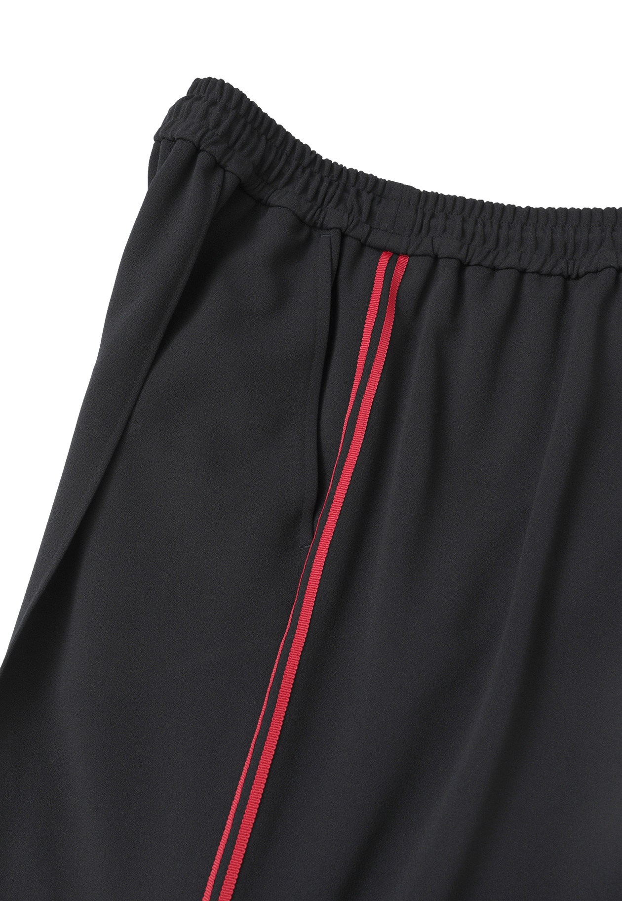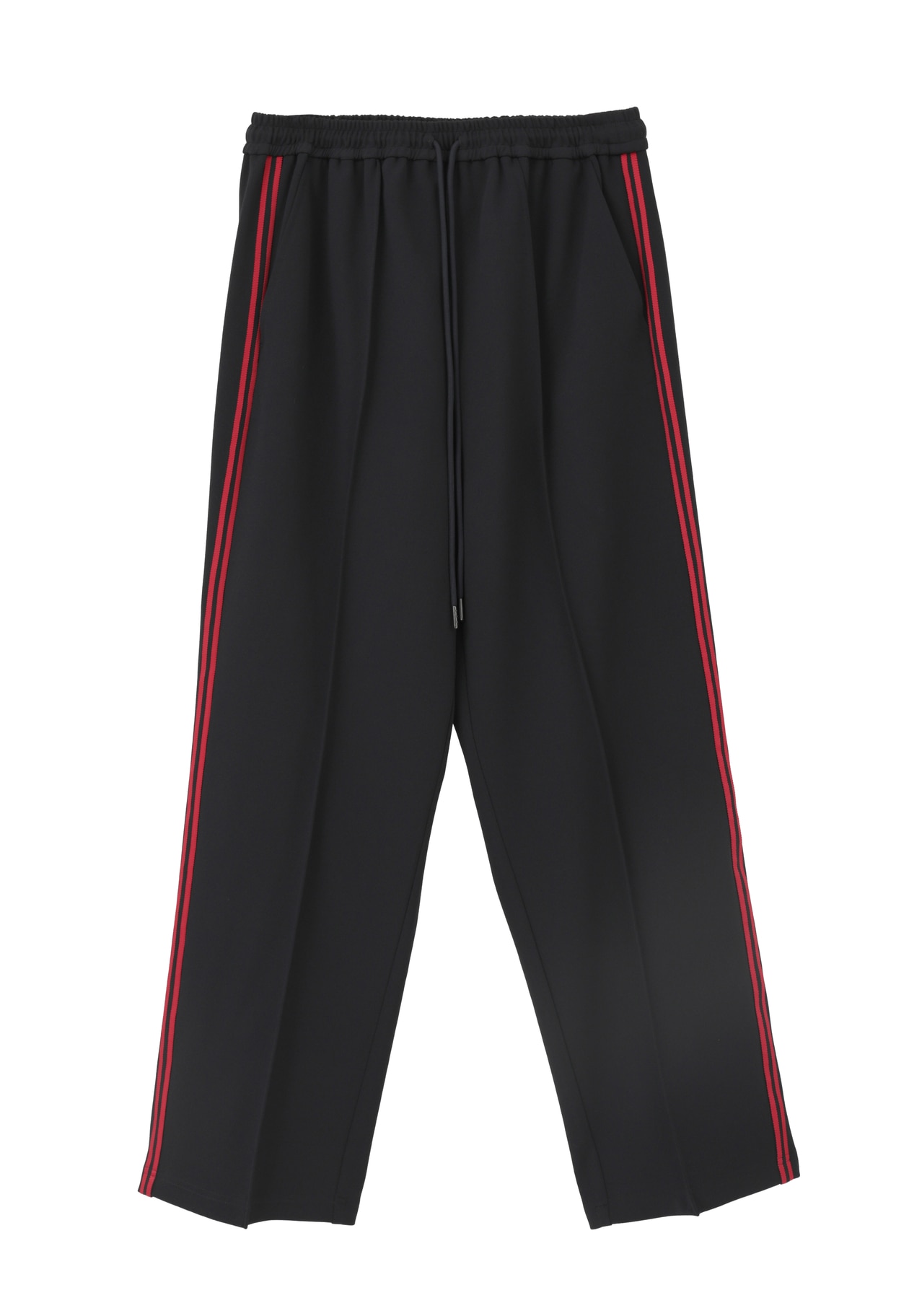 布帛の様に見えるジョーゼットジャージの素材を使用し、緩めストレートラインのトラックパンツに仕上げています。