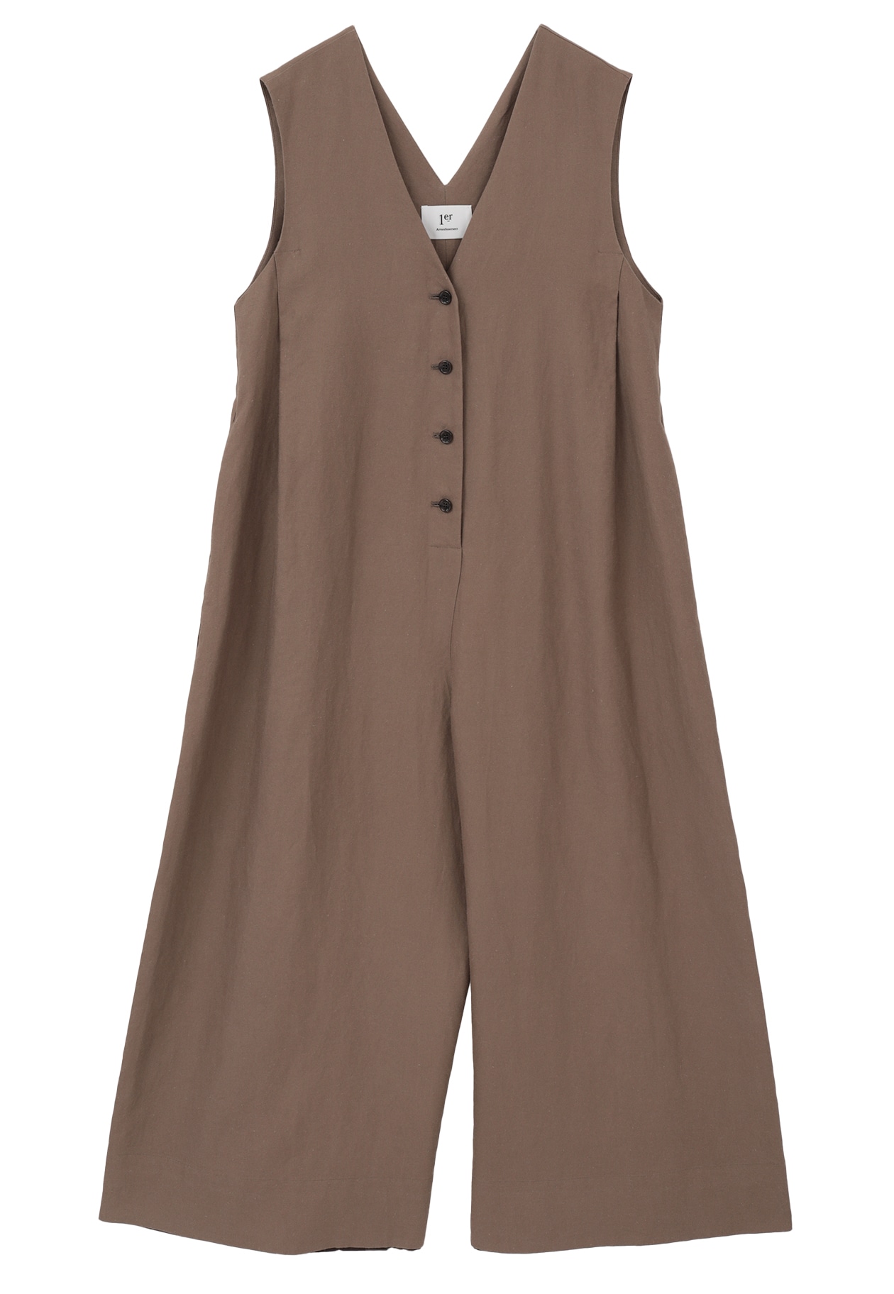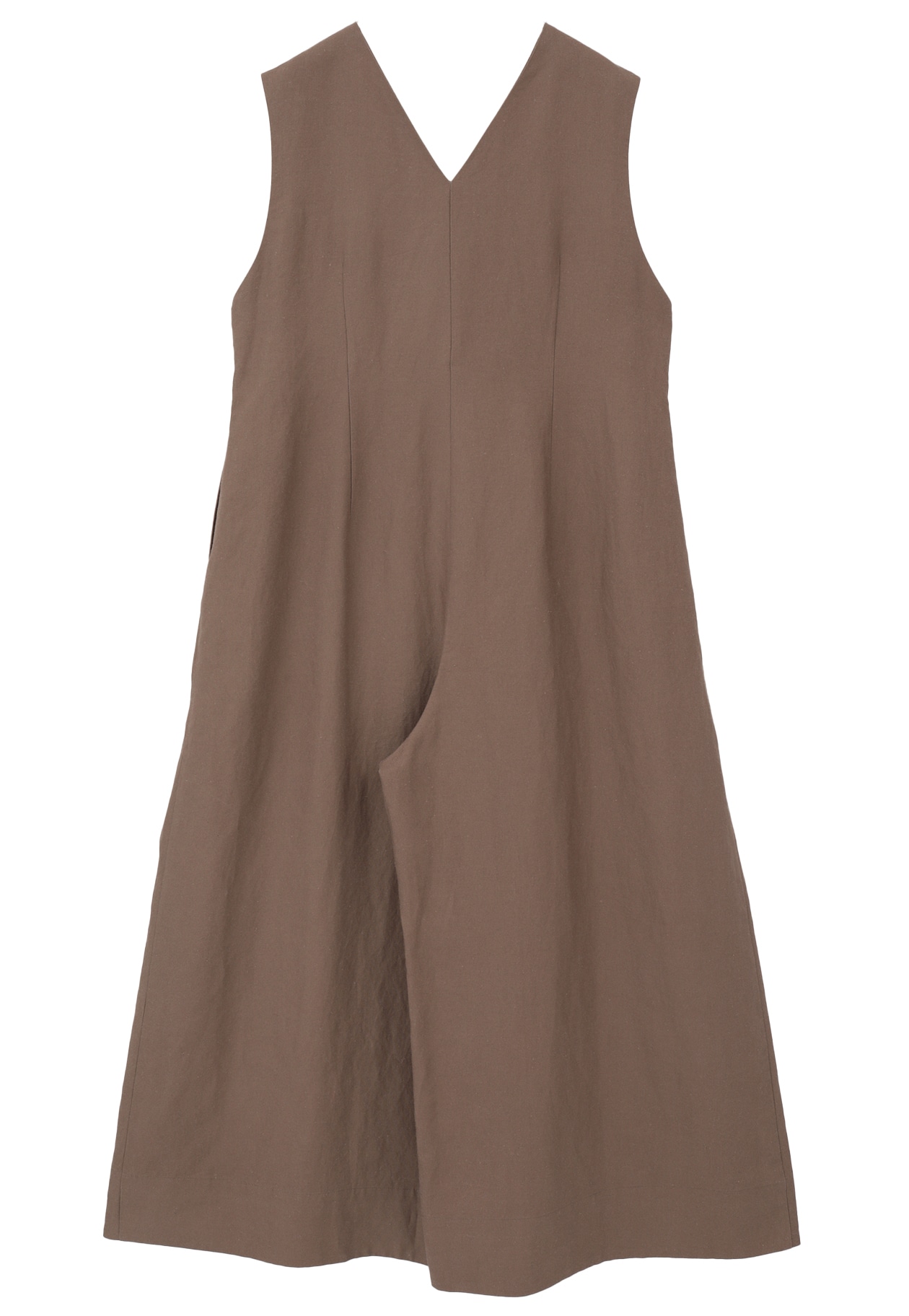 程よくしっかりとした麻100%素材を使用した、ソフトな風合いのVネックオールインワン。