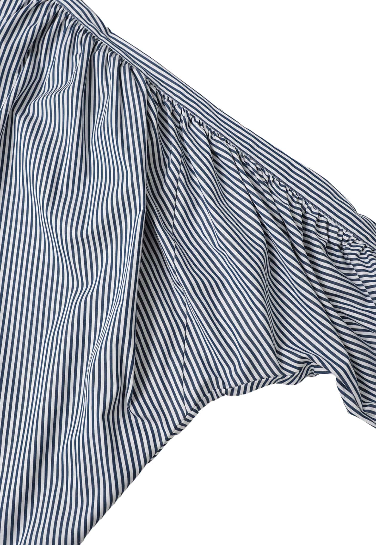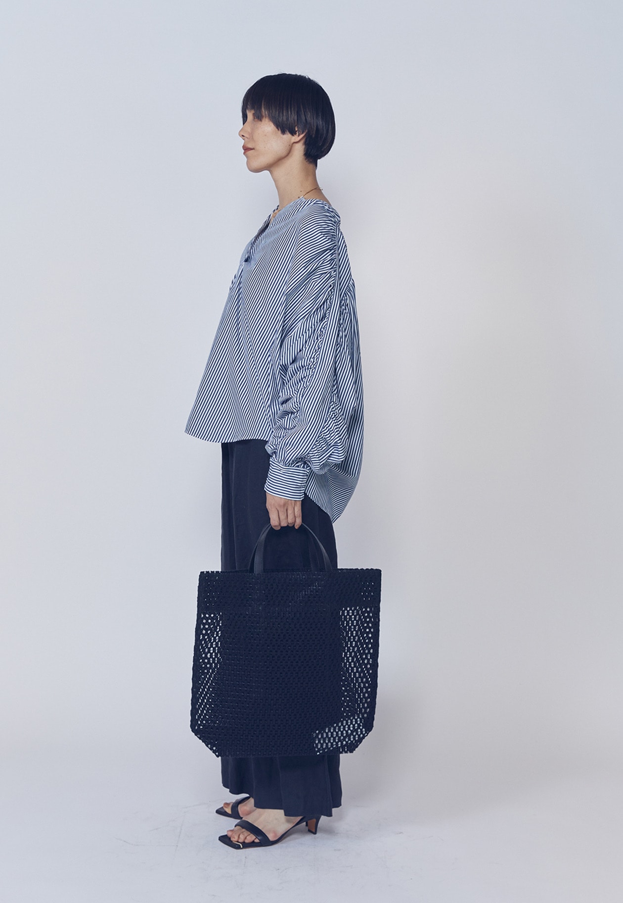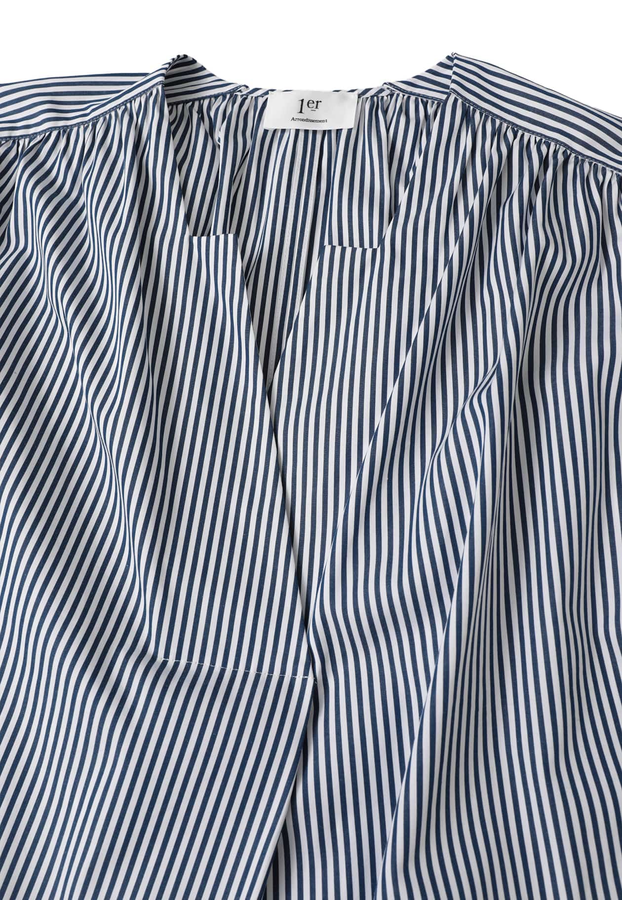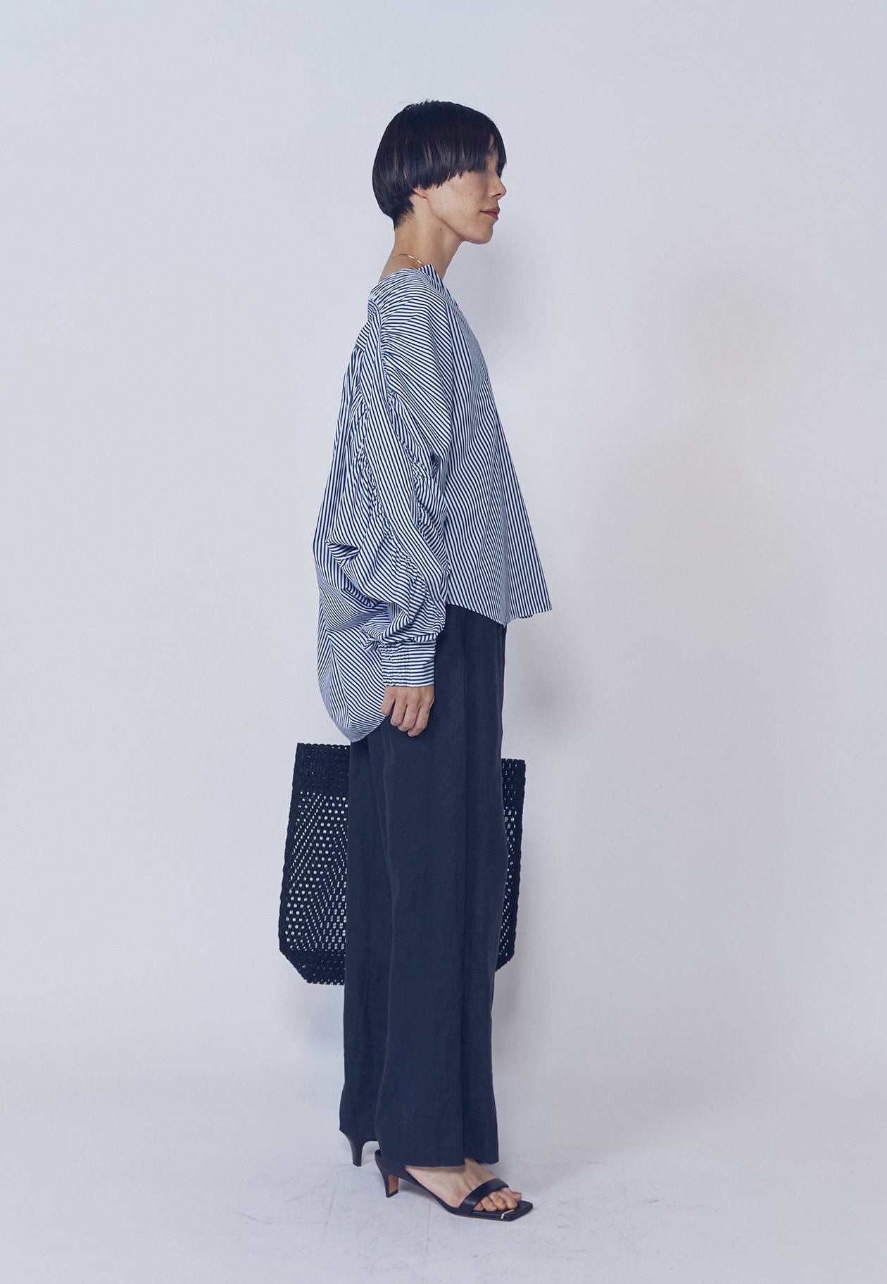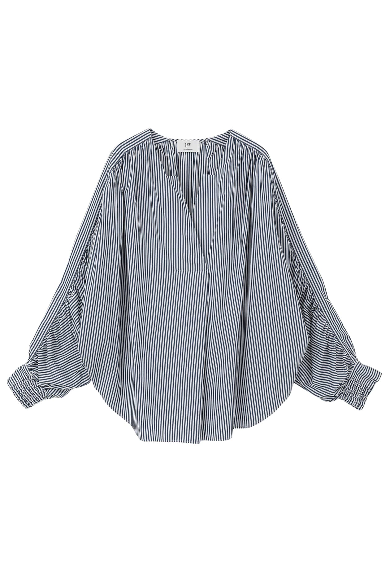 シャツ地に贅沢にタックとギャザーを施し、柔らかな女性らしさを表現したブラウス。