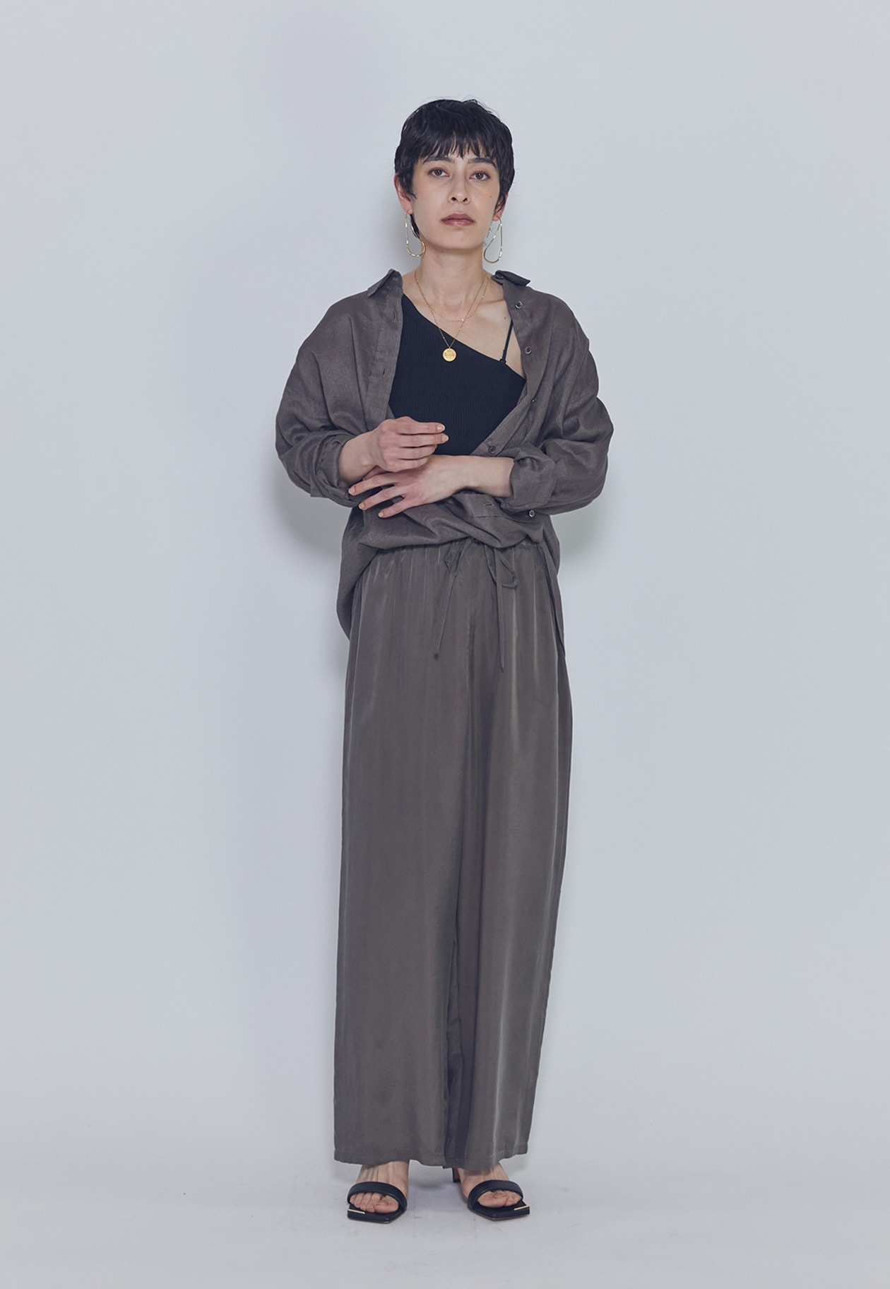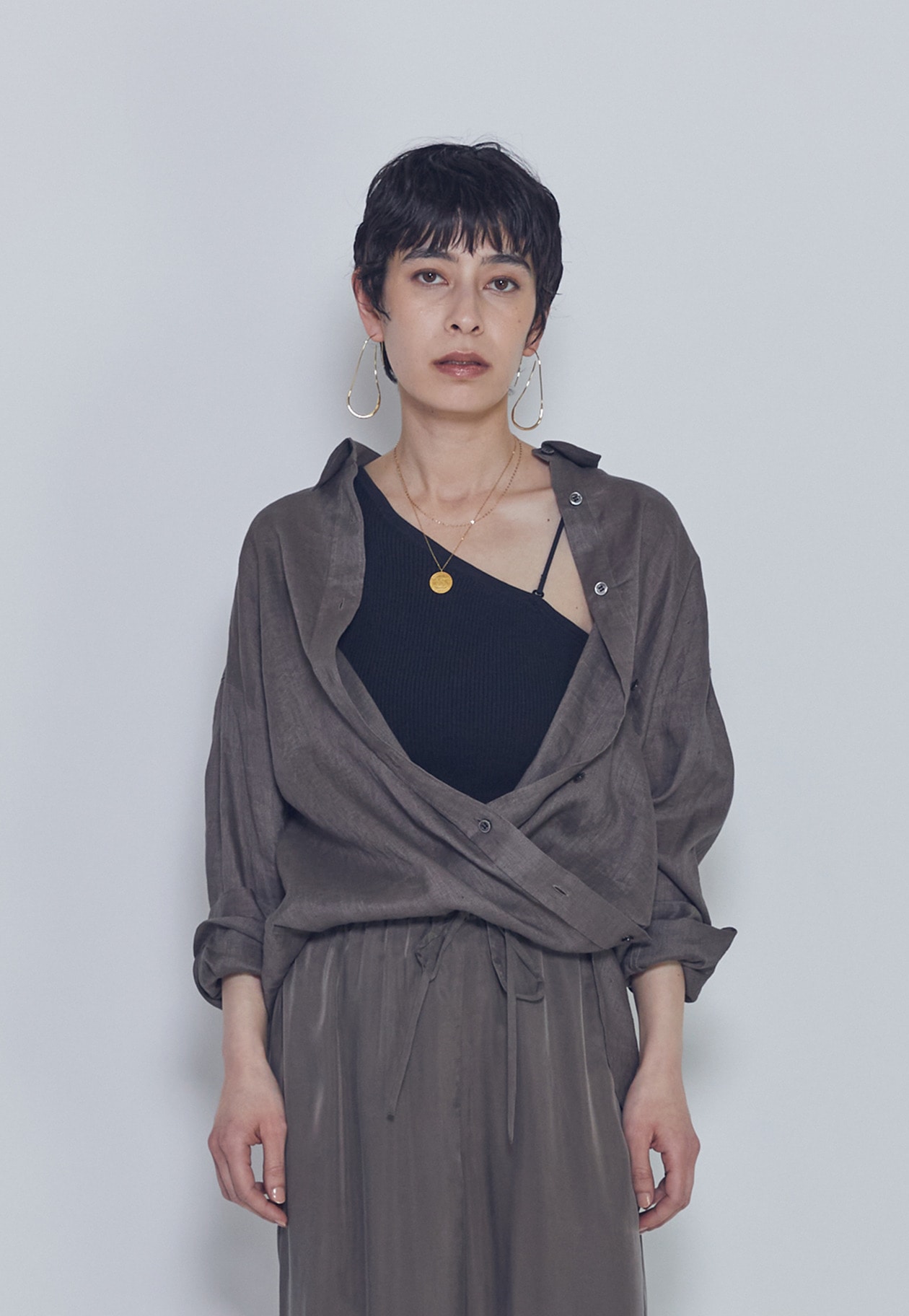 サイズは程よくオーバーなため、華奢みえするサイズ感。