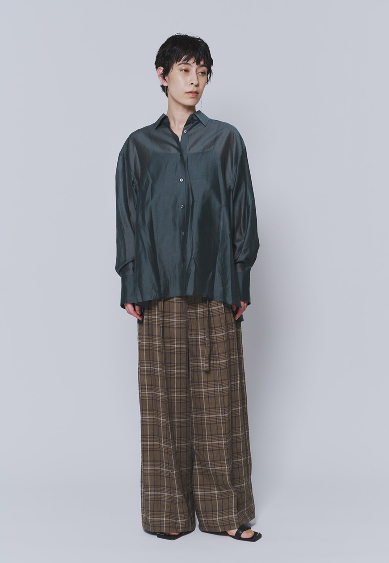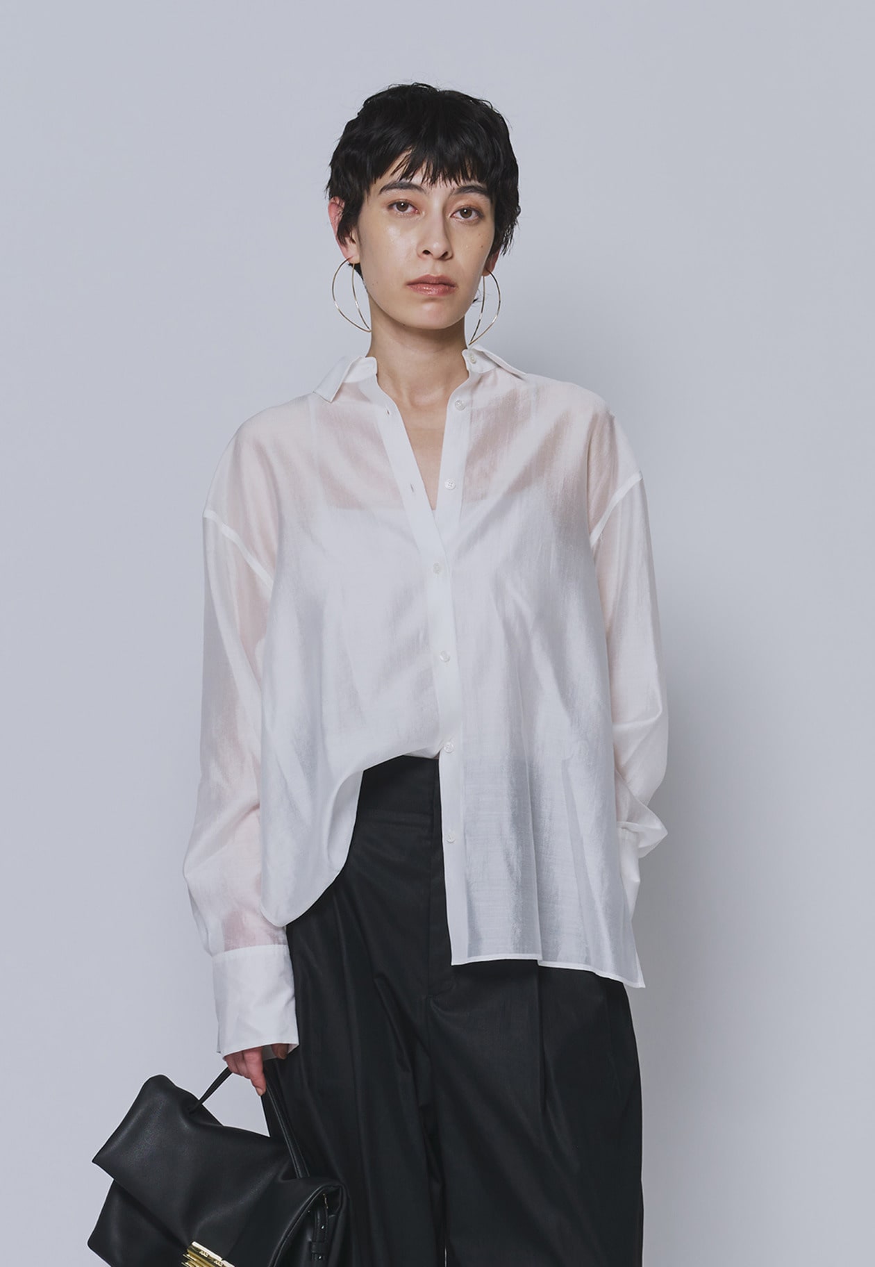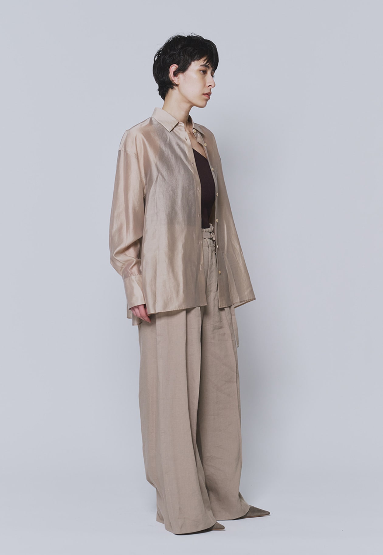 ハリと光沢が美しく、肌触りのよいシアー素材を使用。