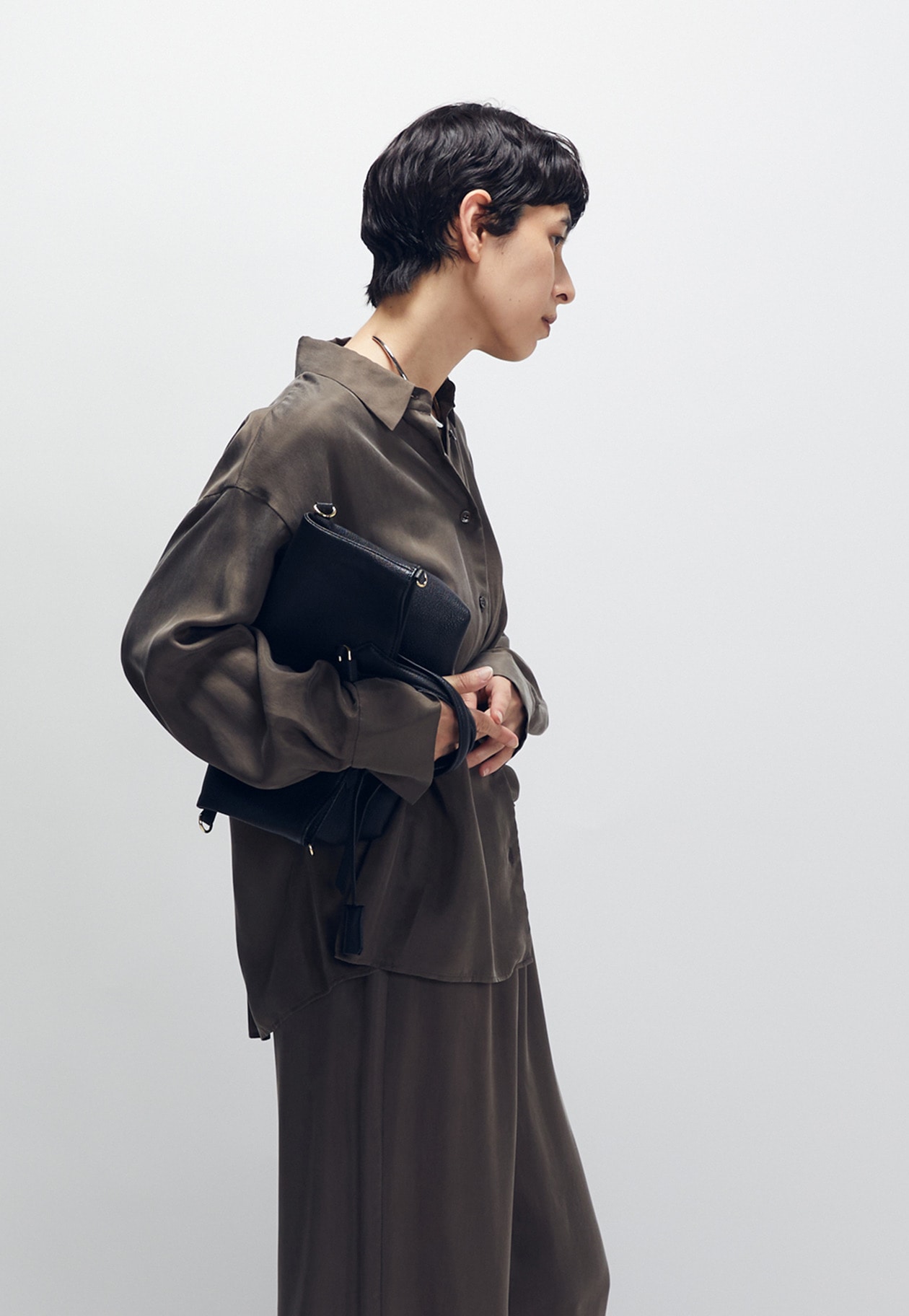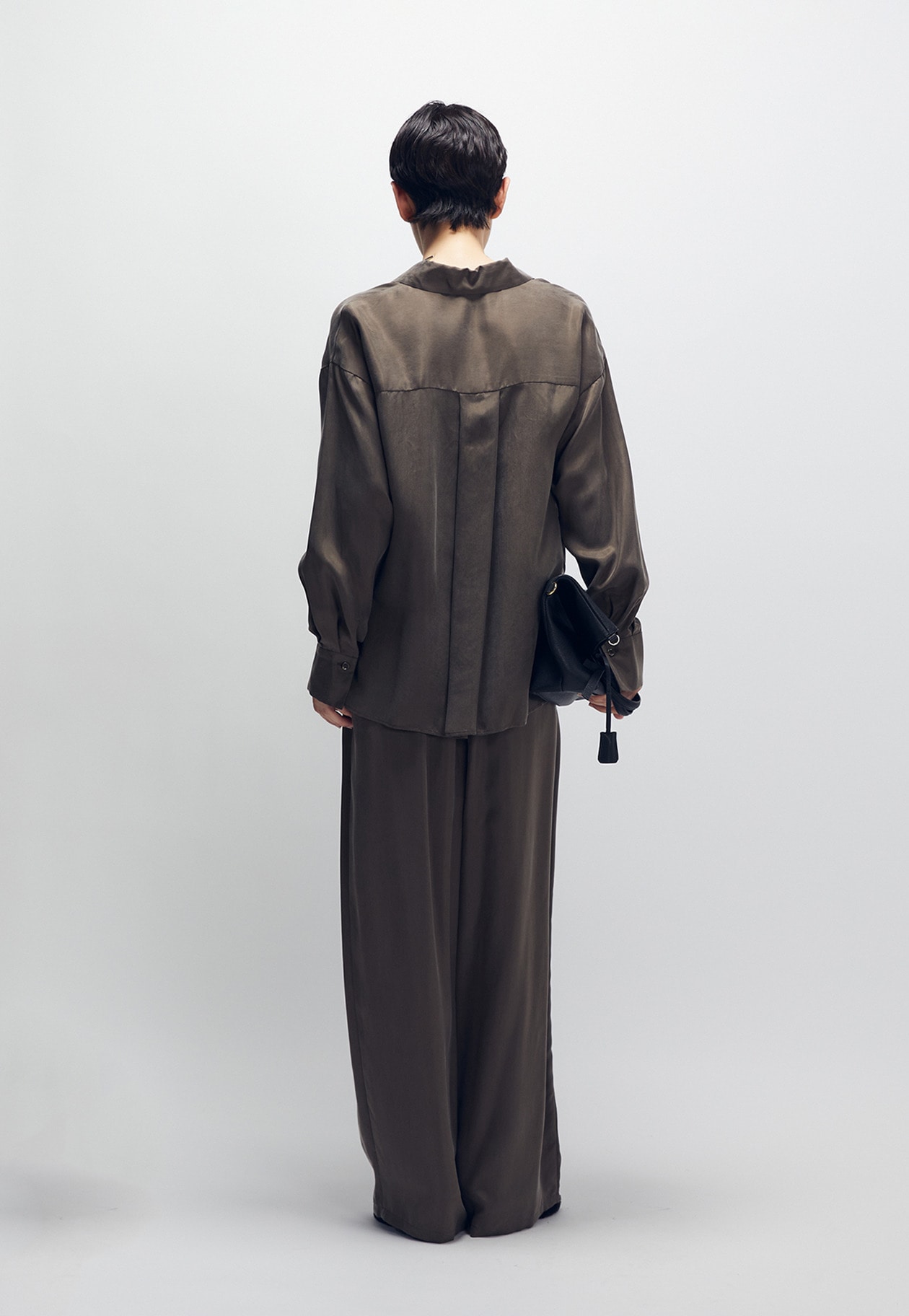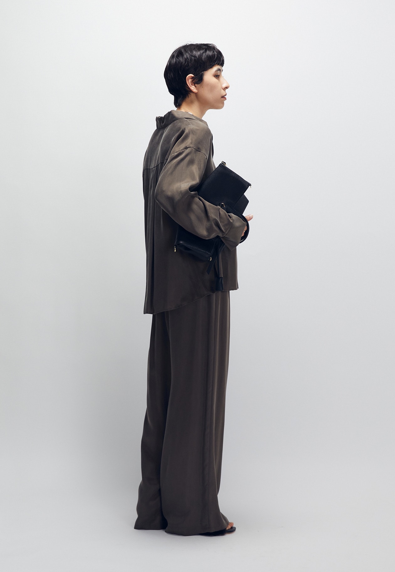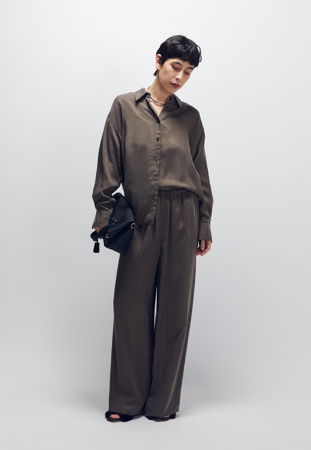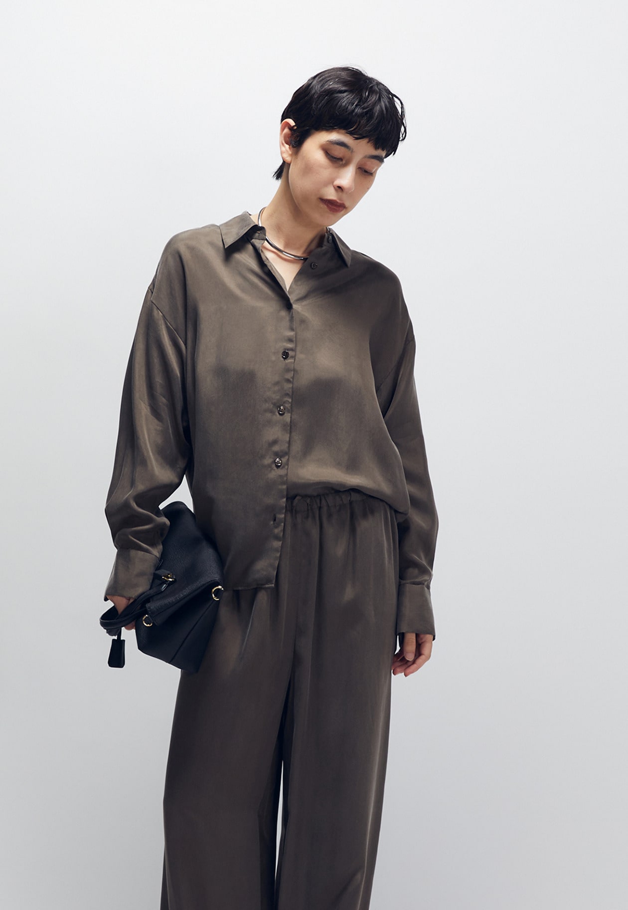 マットな光沢ととろみのあるキュプラ素材を使用したトップス。