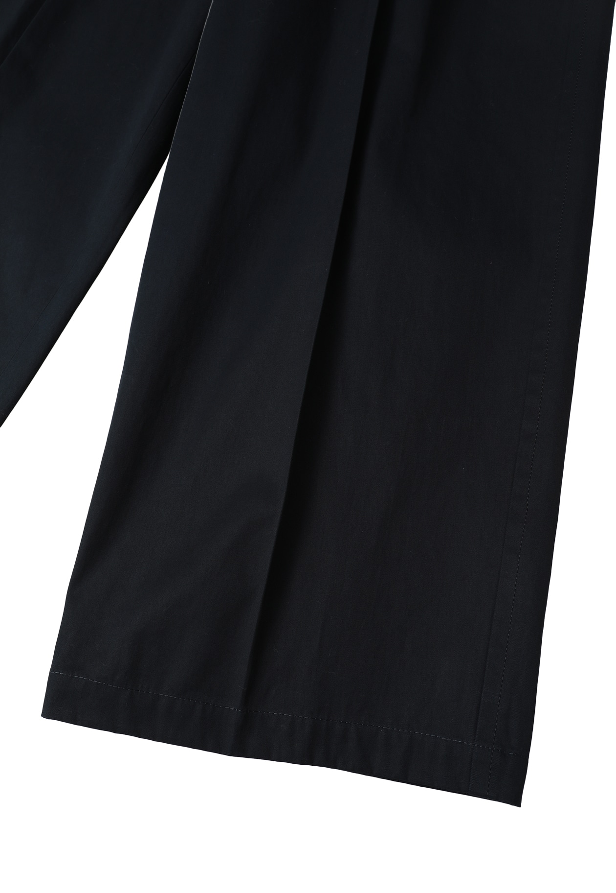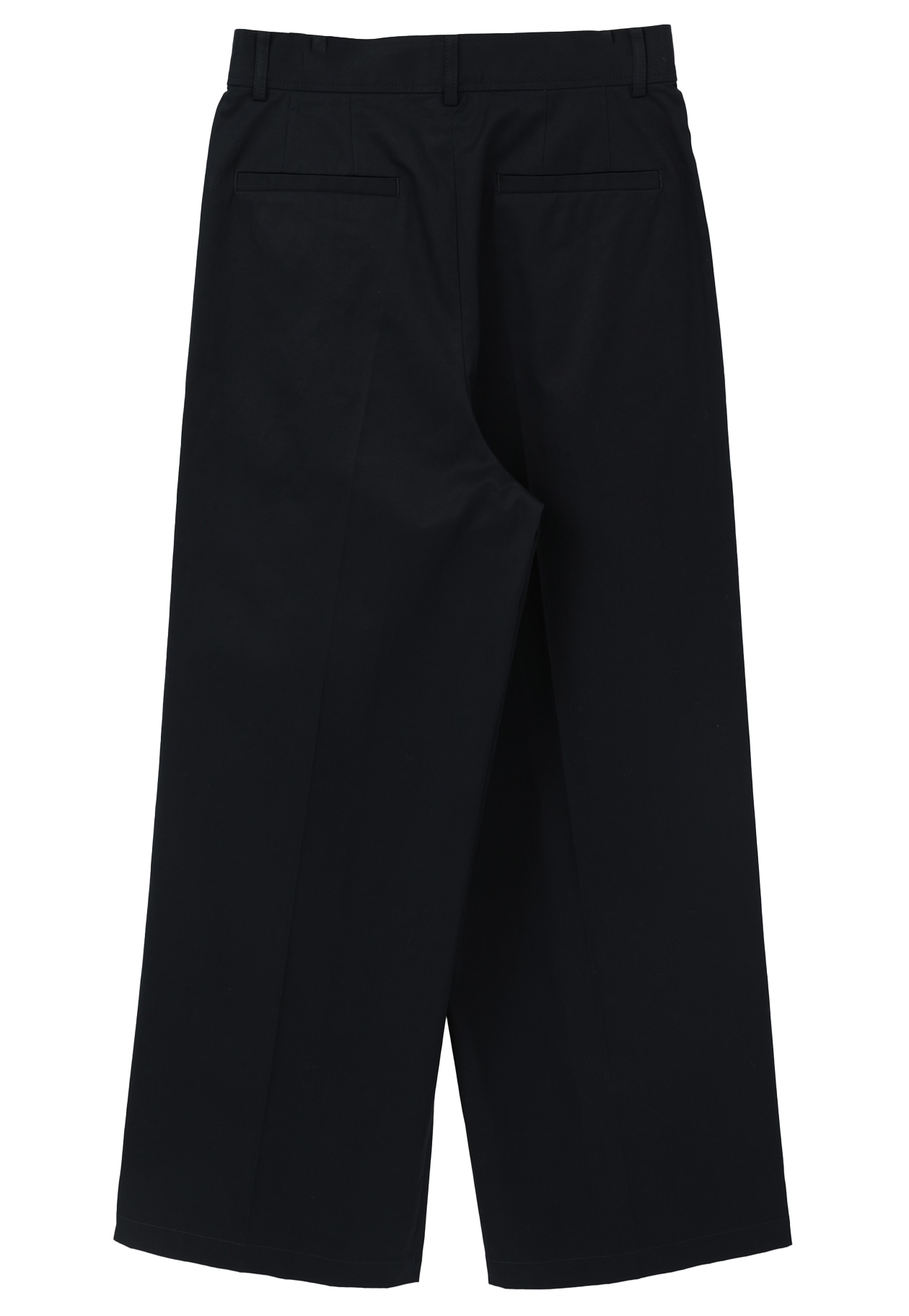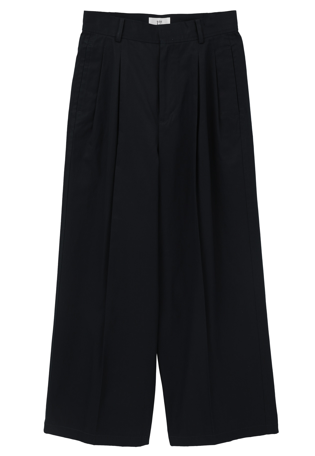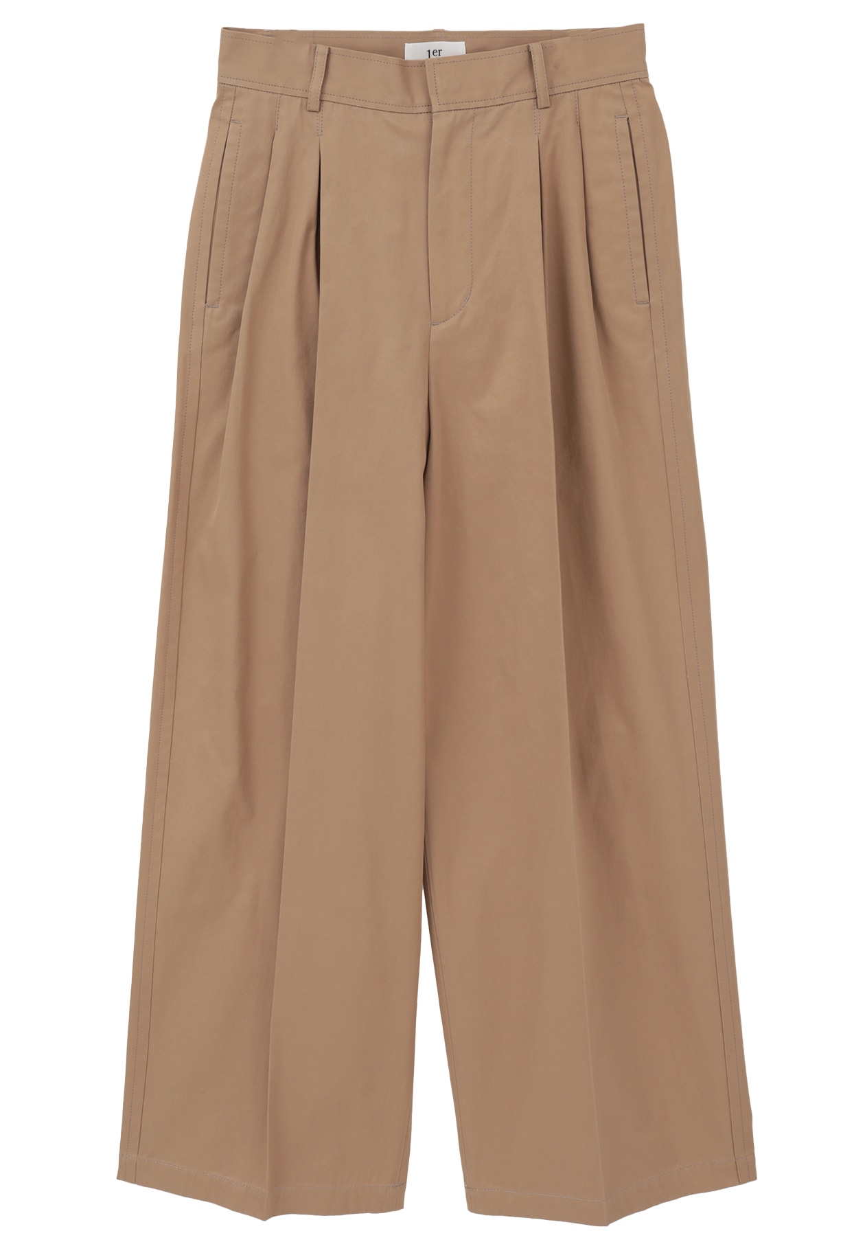 ドライでコシがあり、毛羽を抑えた綿ツイル素材を使用したワイドパンツ。