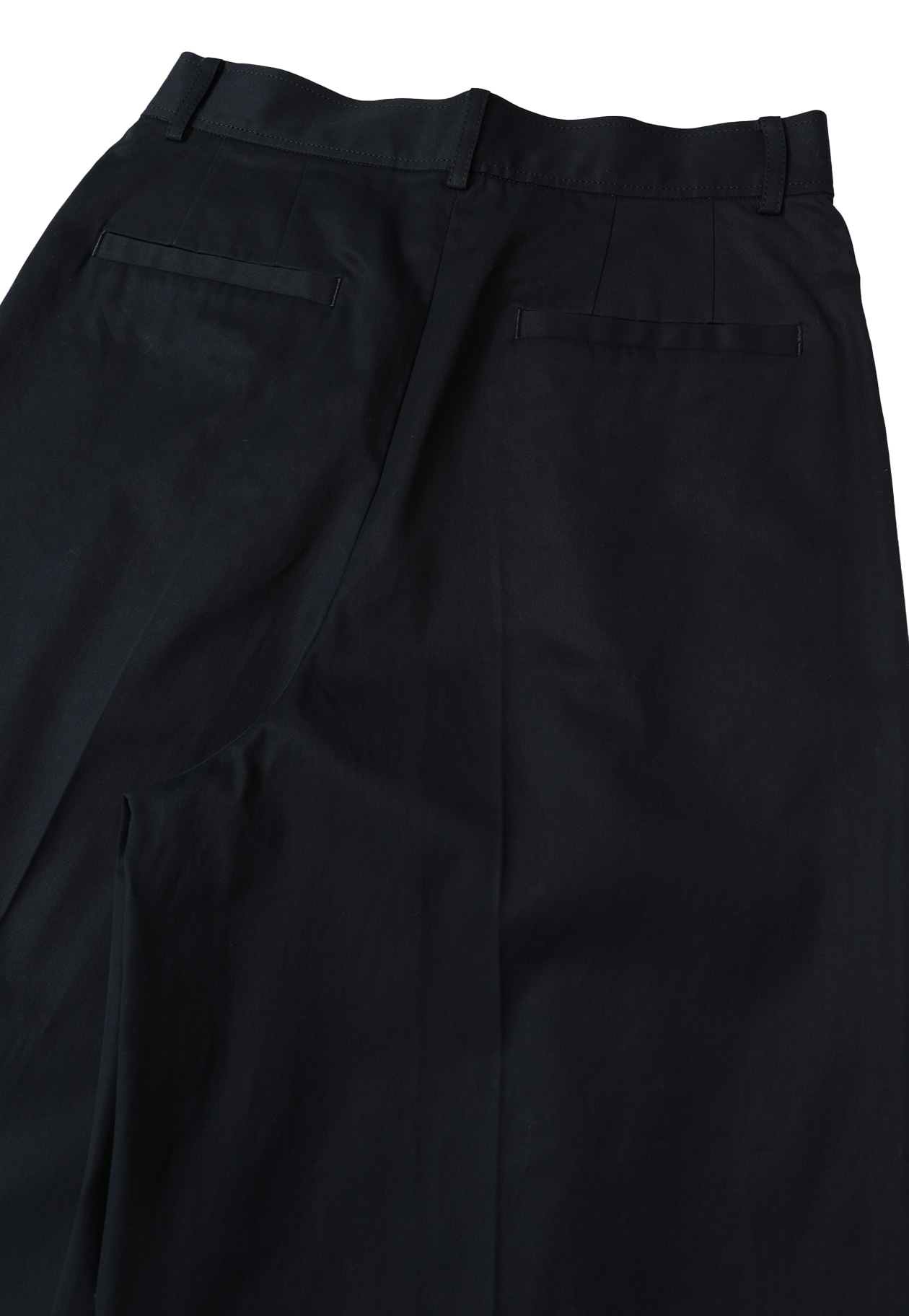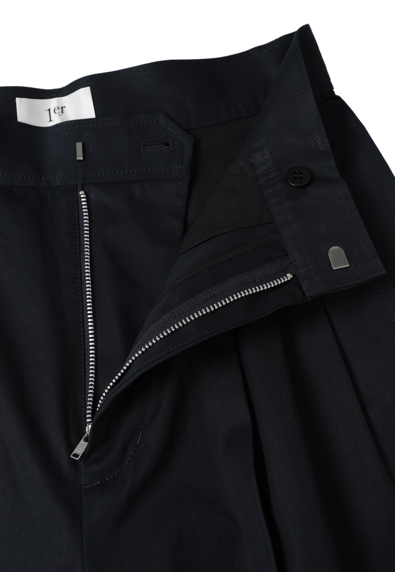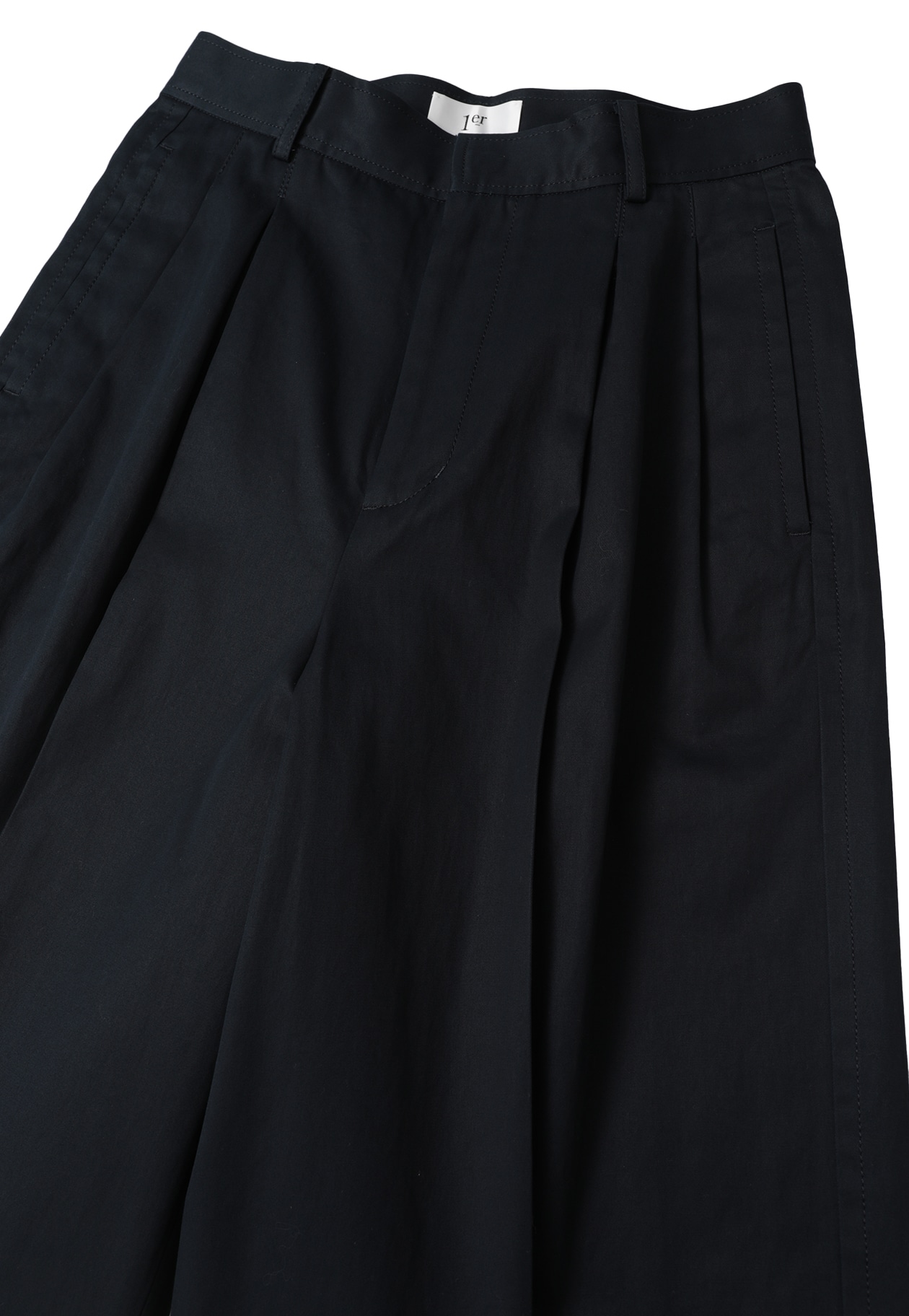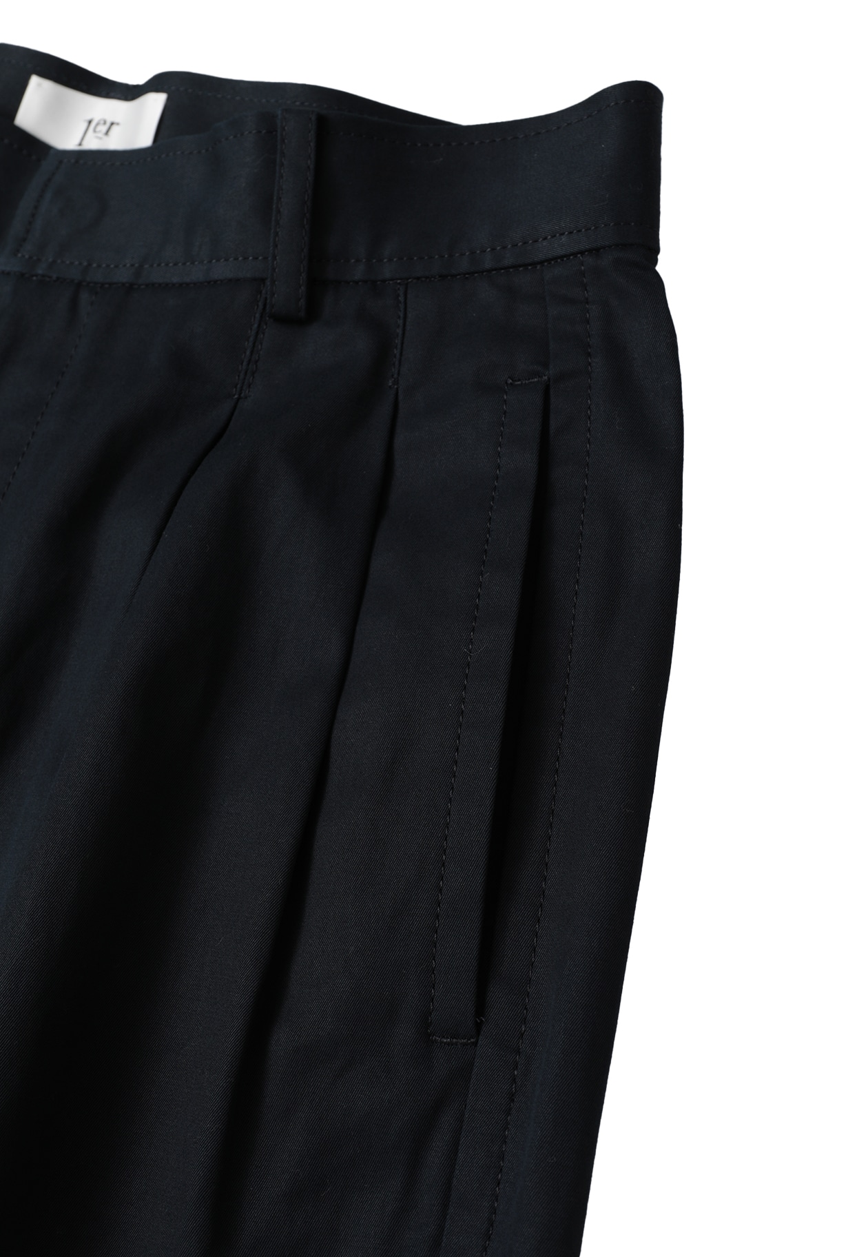 すっきりとしたワイドシルエットながら、特徴的なタックデザインがさりげないアクセントに。