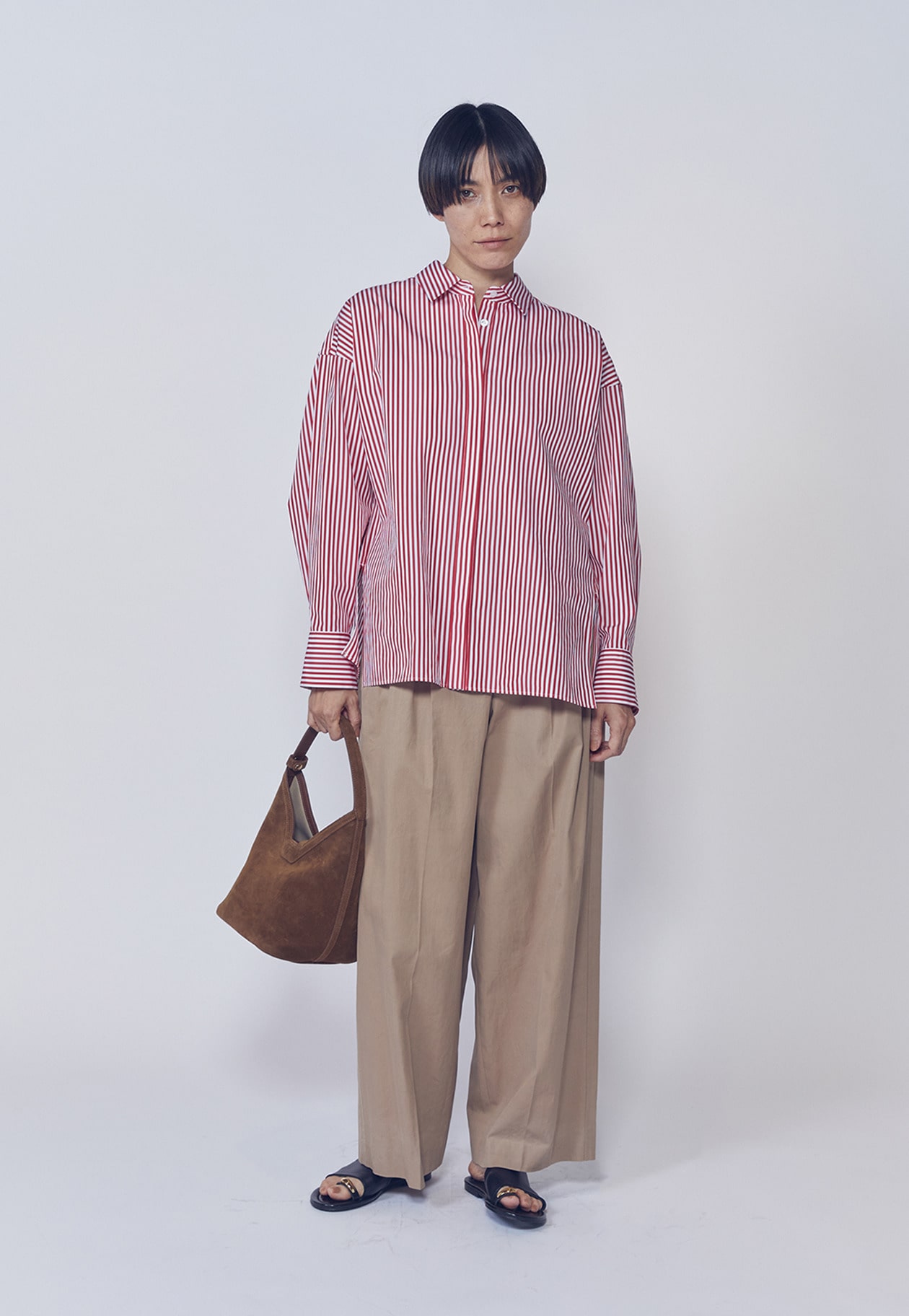 シャツやハイゲージニットと合わせた、クリーンな着こなしもおすすめです。