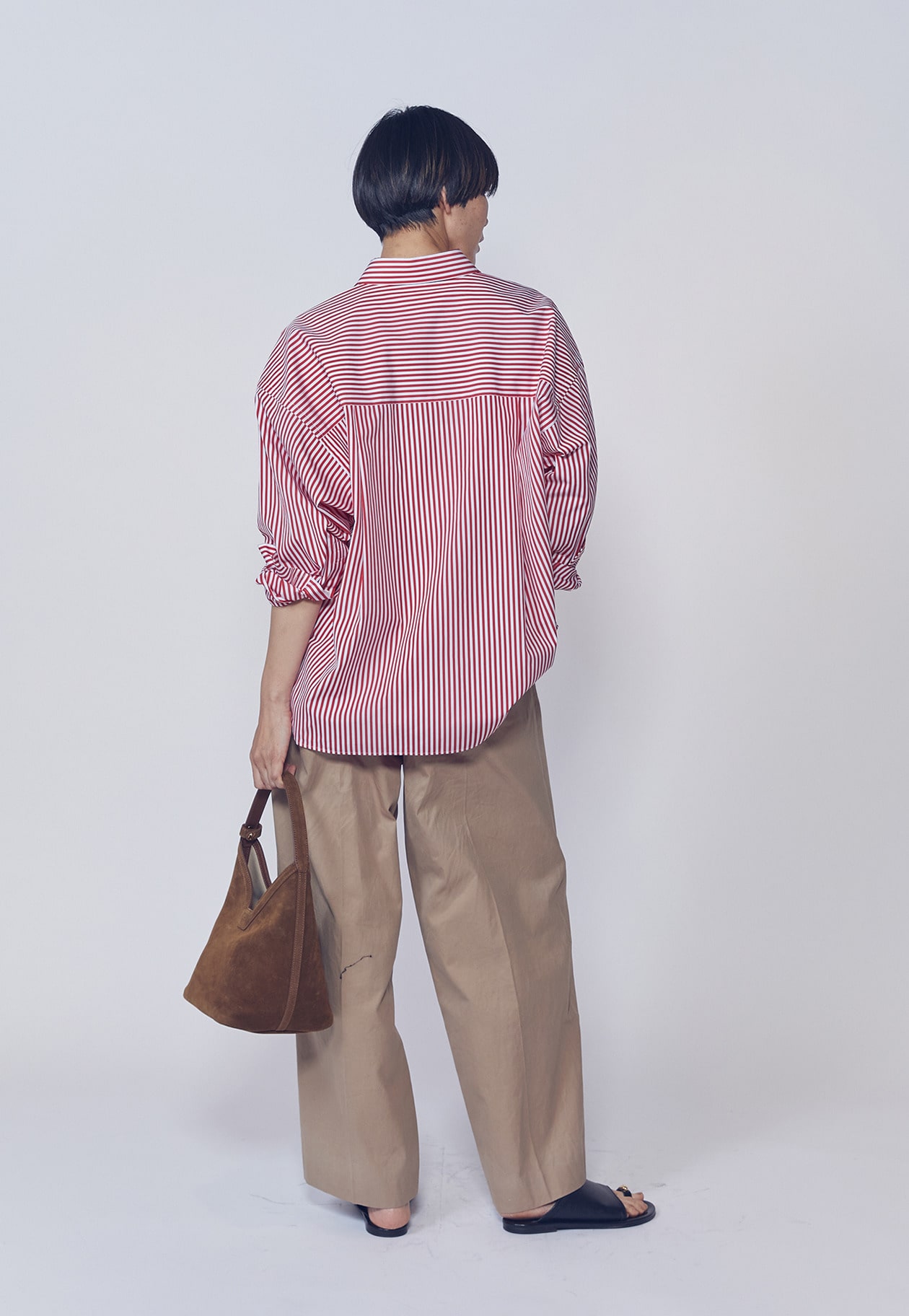 ステッチを効かせたディテールもポイントですが、素材のきれいさがあることでラフになりすぎないバランスに。