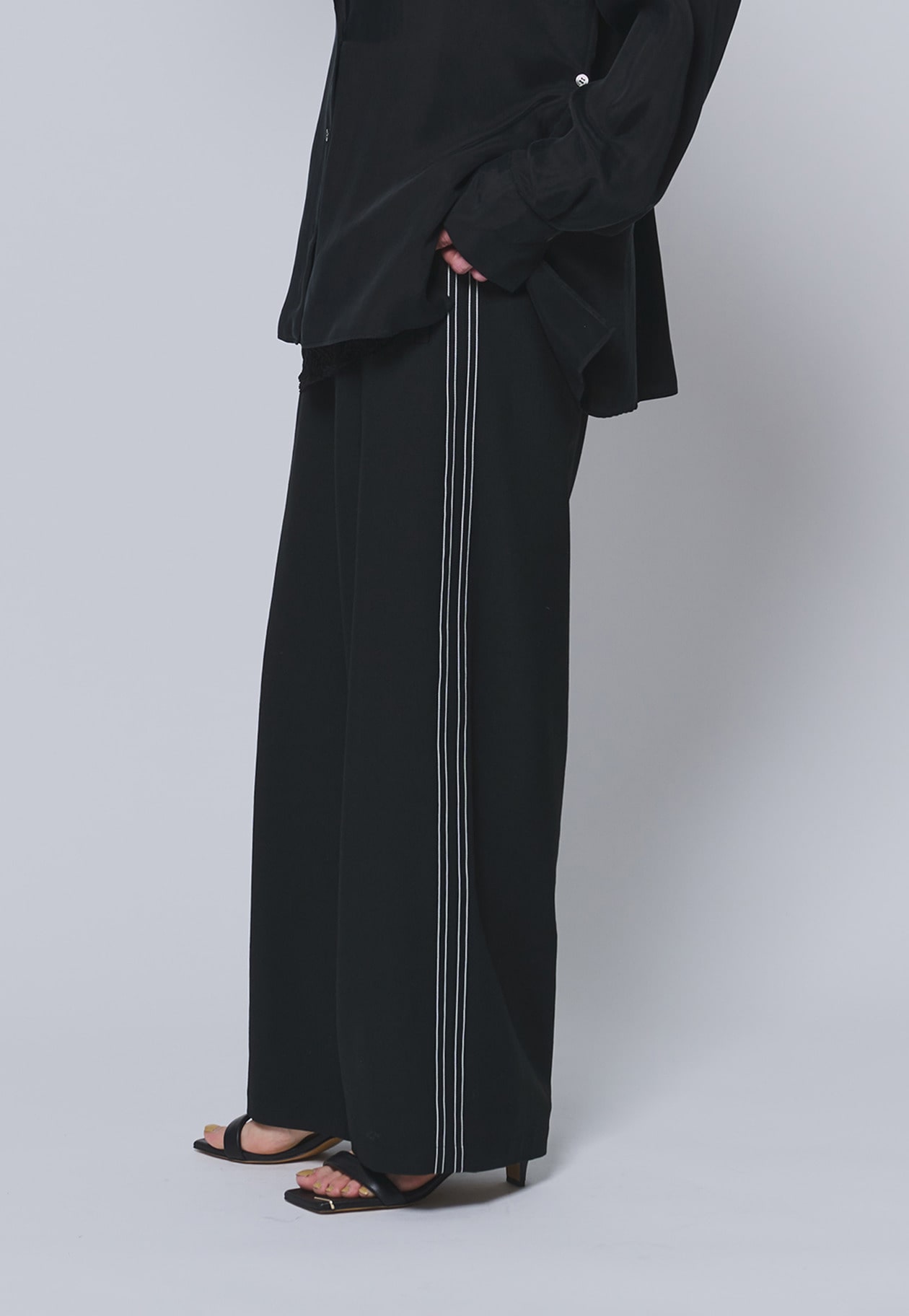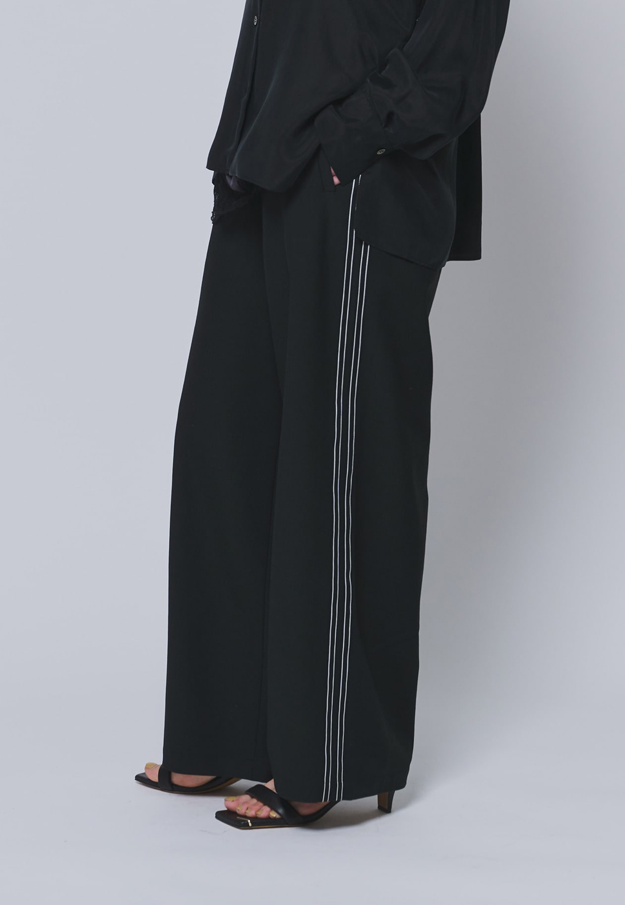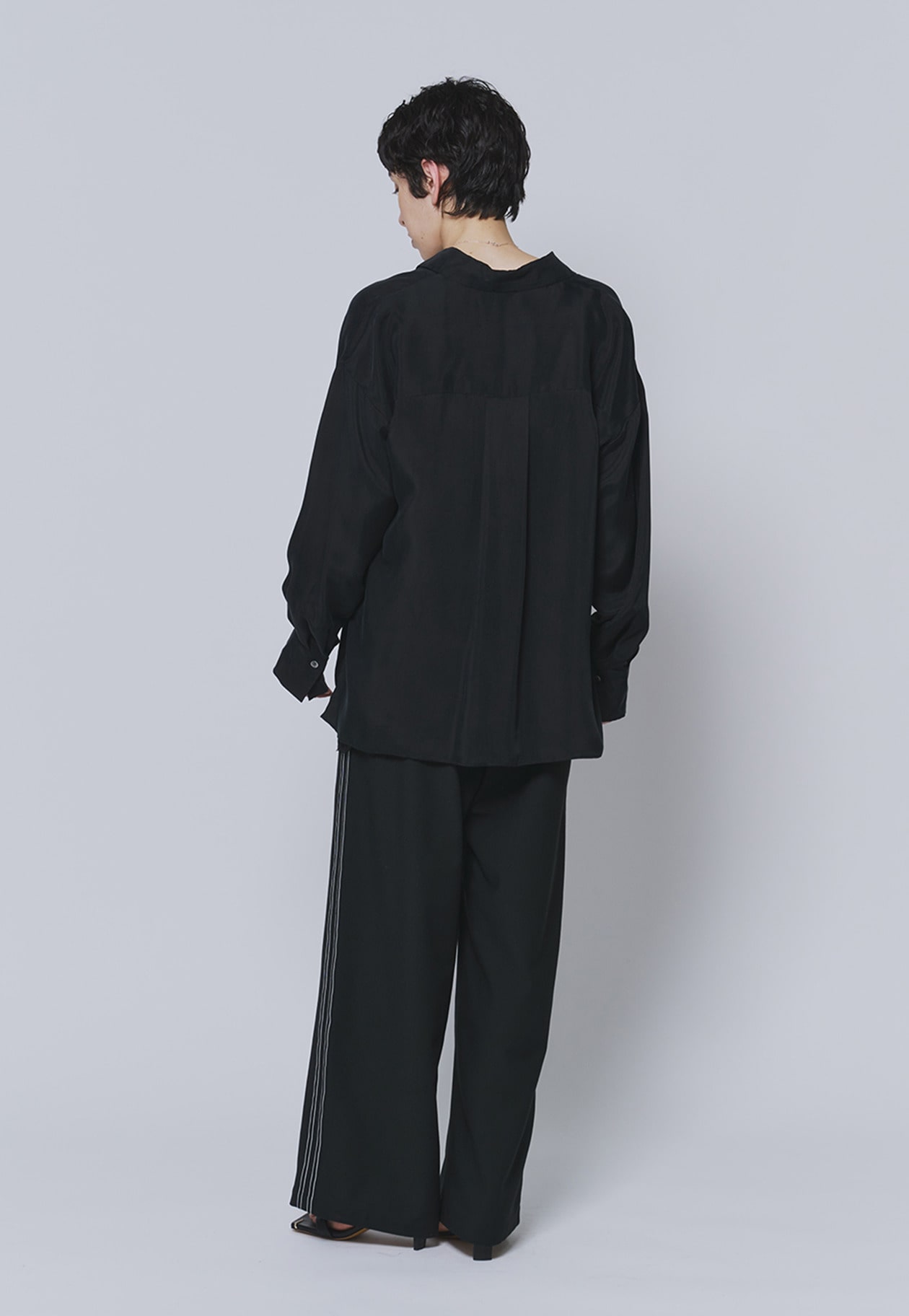 程よい落ち感のある素材で、すっきりとしたシルエットを演出します。