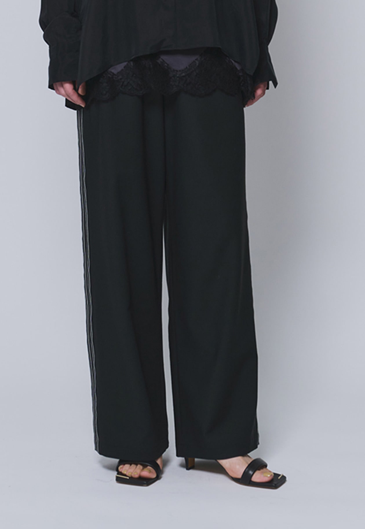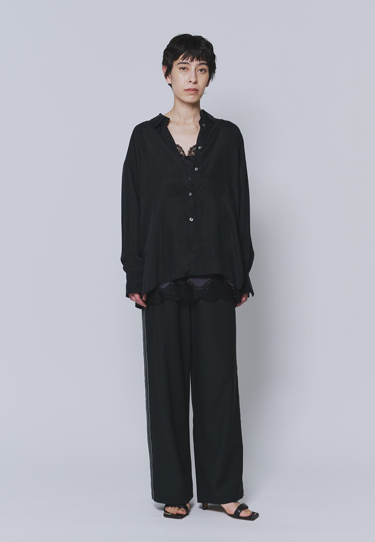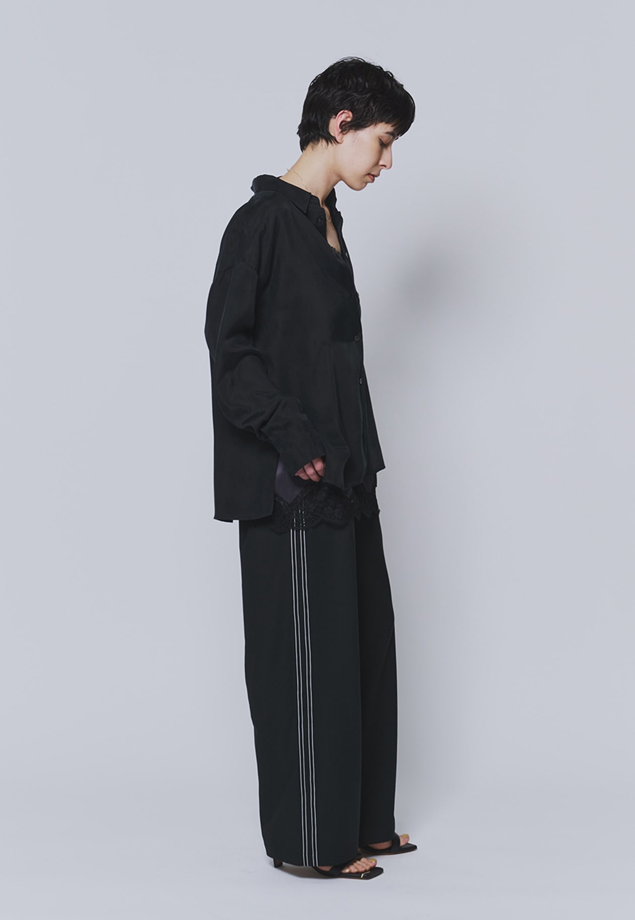 程よい落ち感のある素材で、すっきりとしたシルエットを演出します。