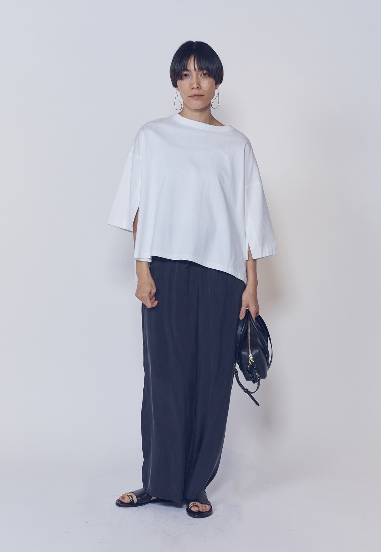 サイズ感:床に付かない程度の丈感でワイドシルエット。