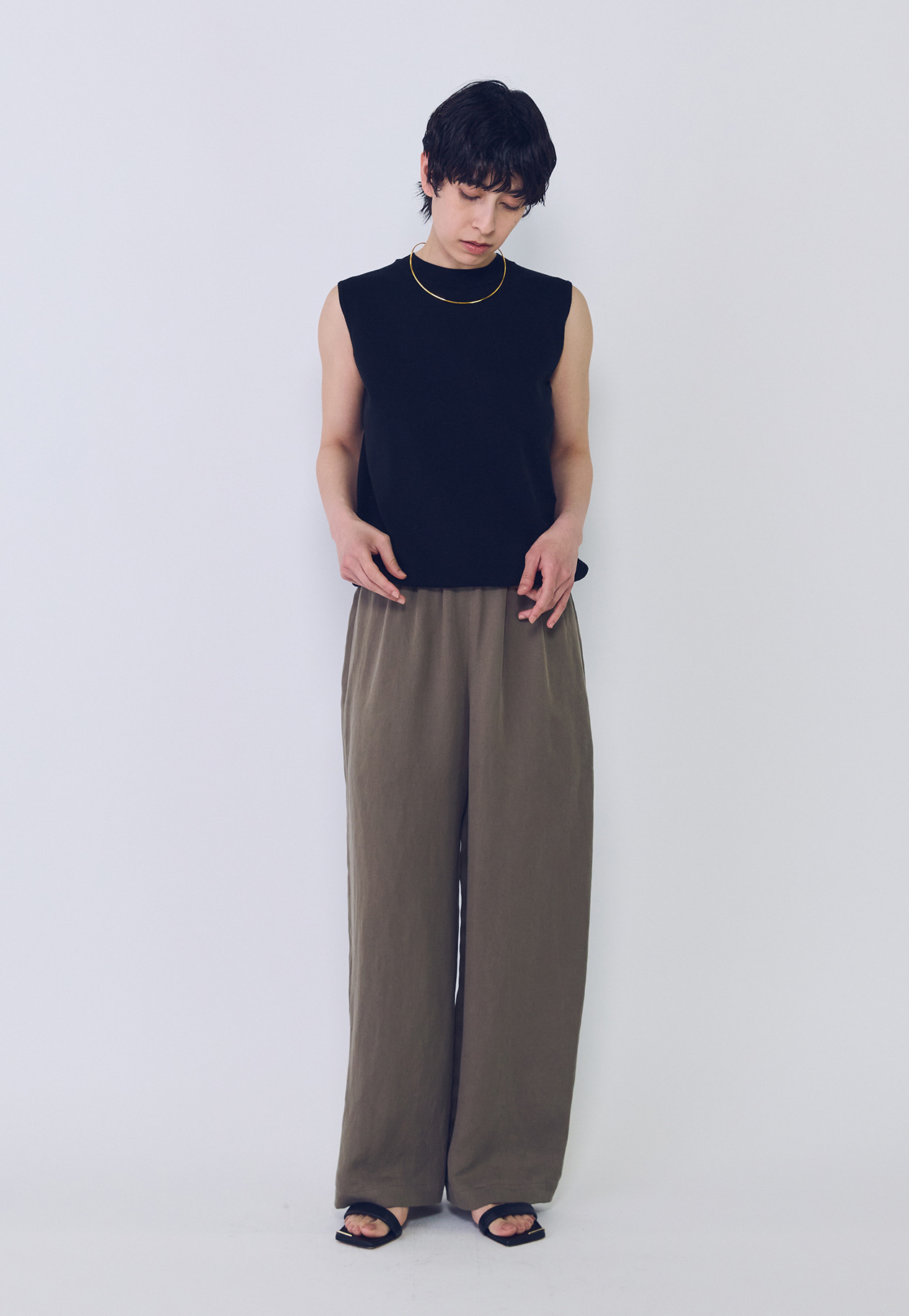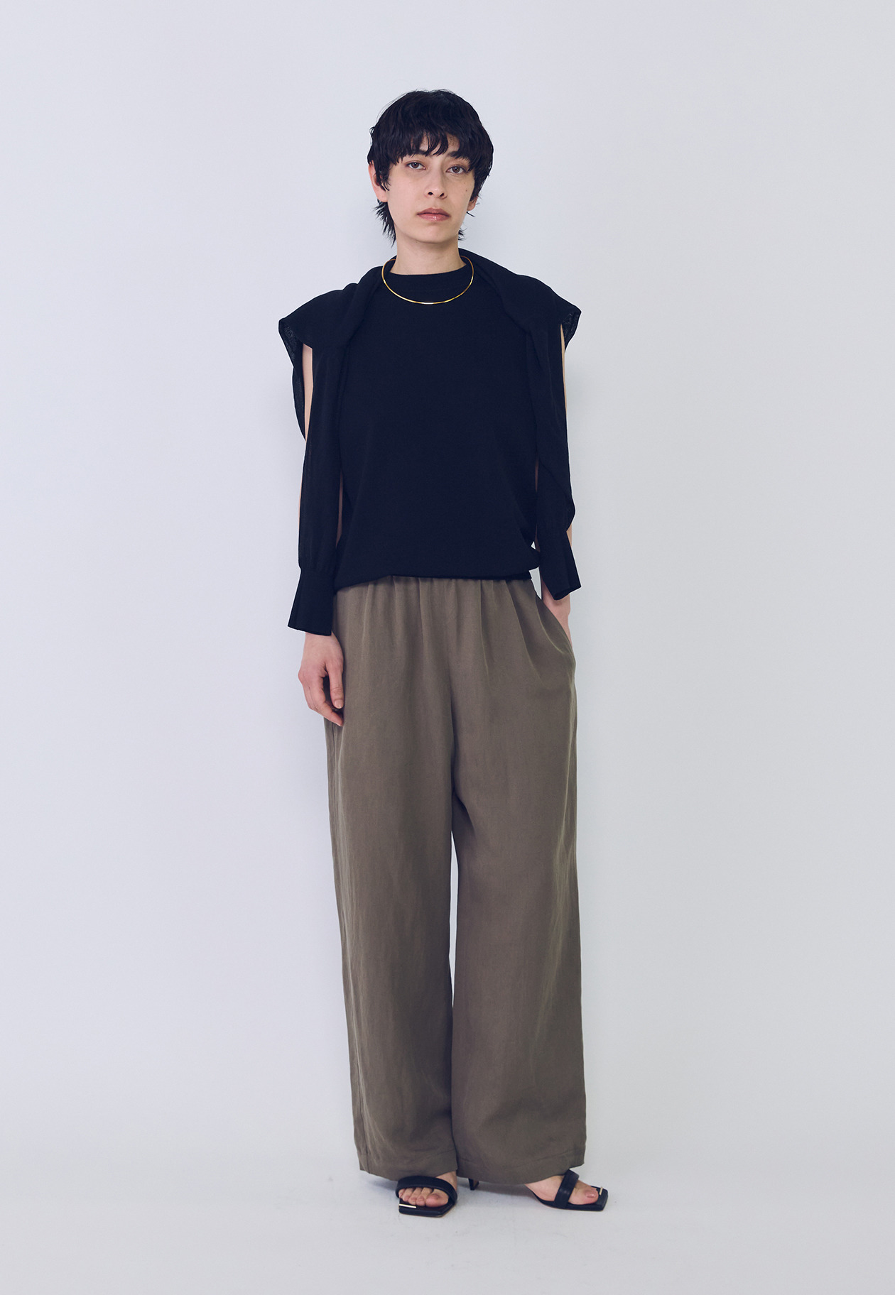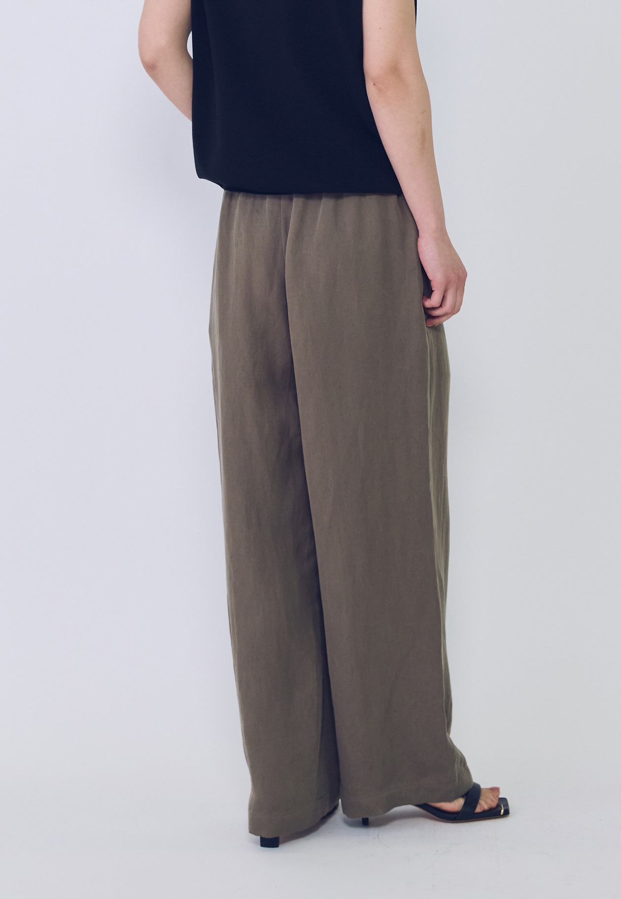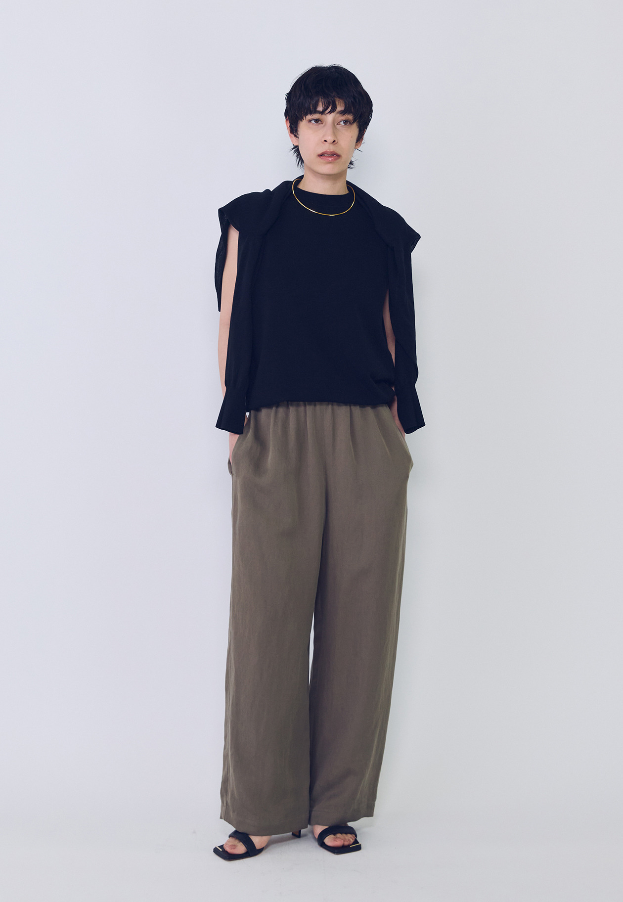 程よい光沢感とスラブ感のあるテンセルリネン素材を使用したワイドパンツ。