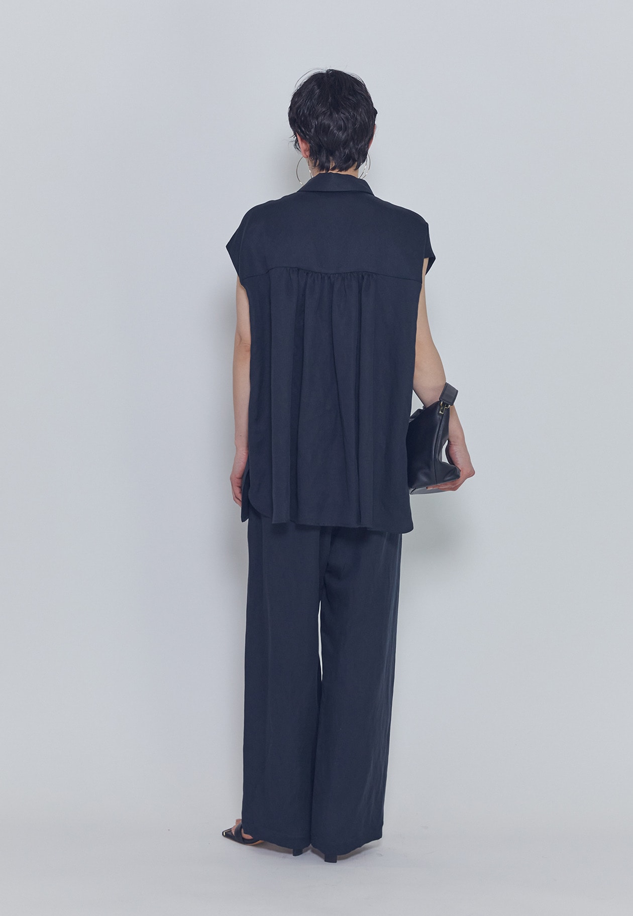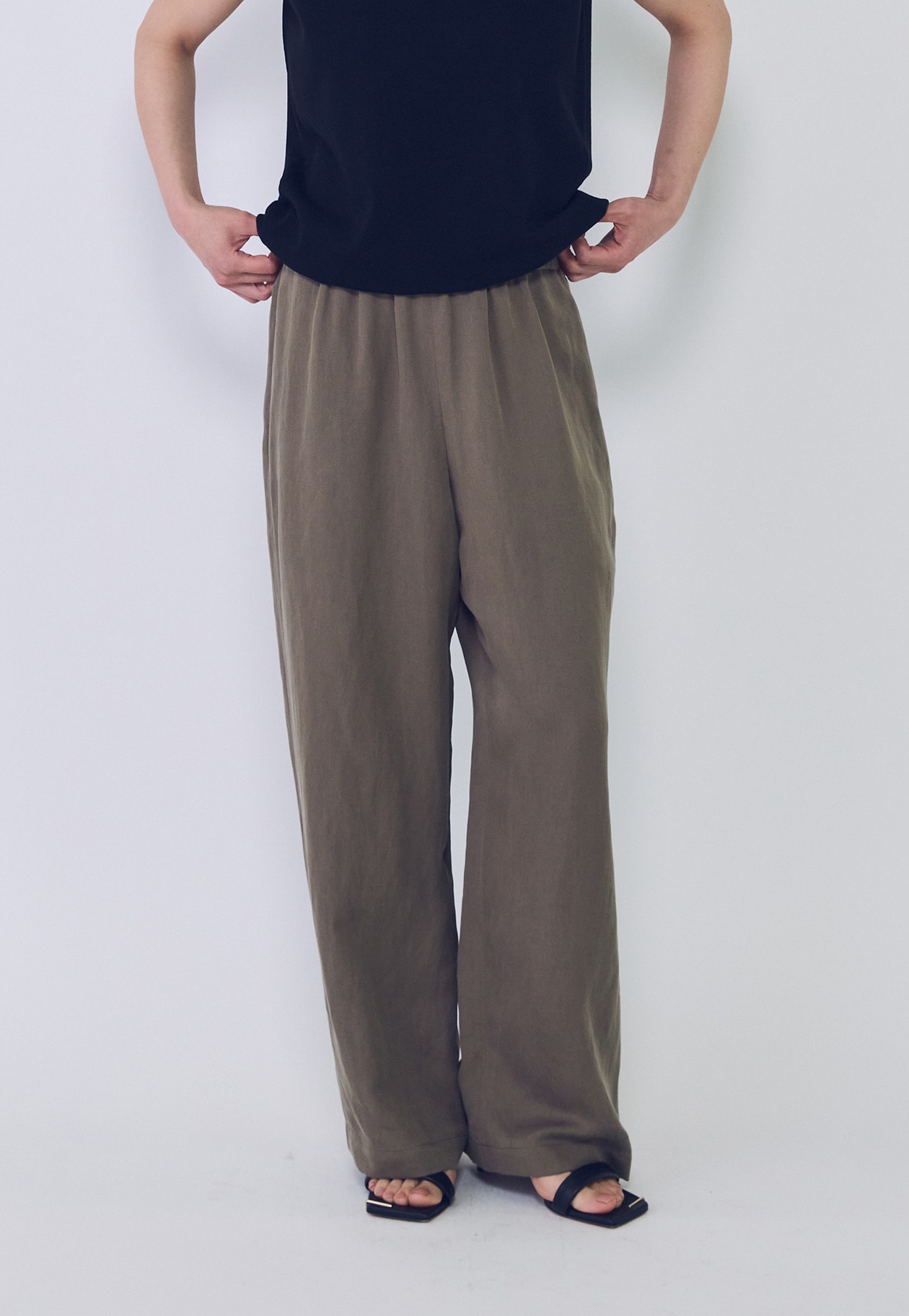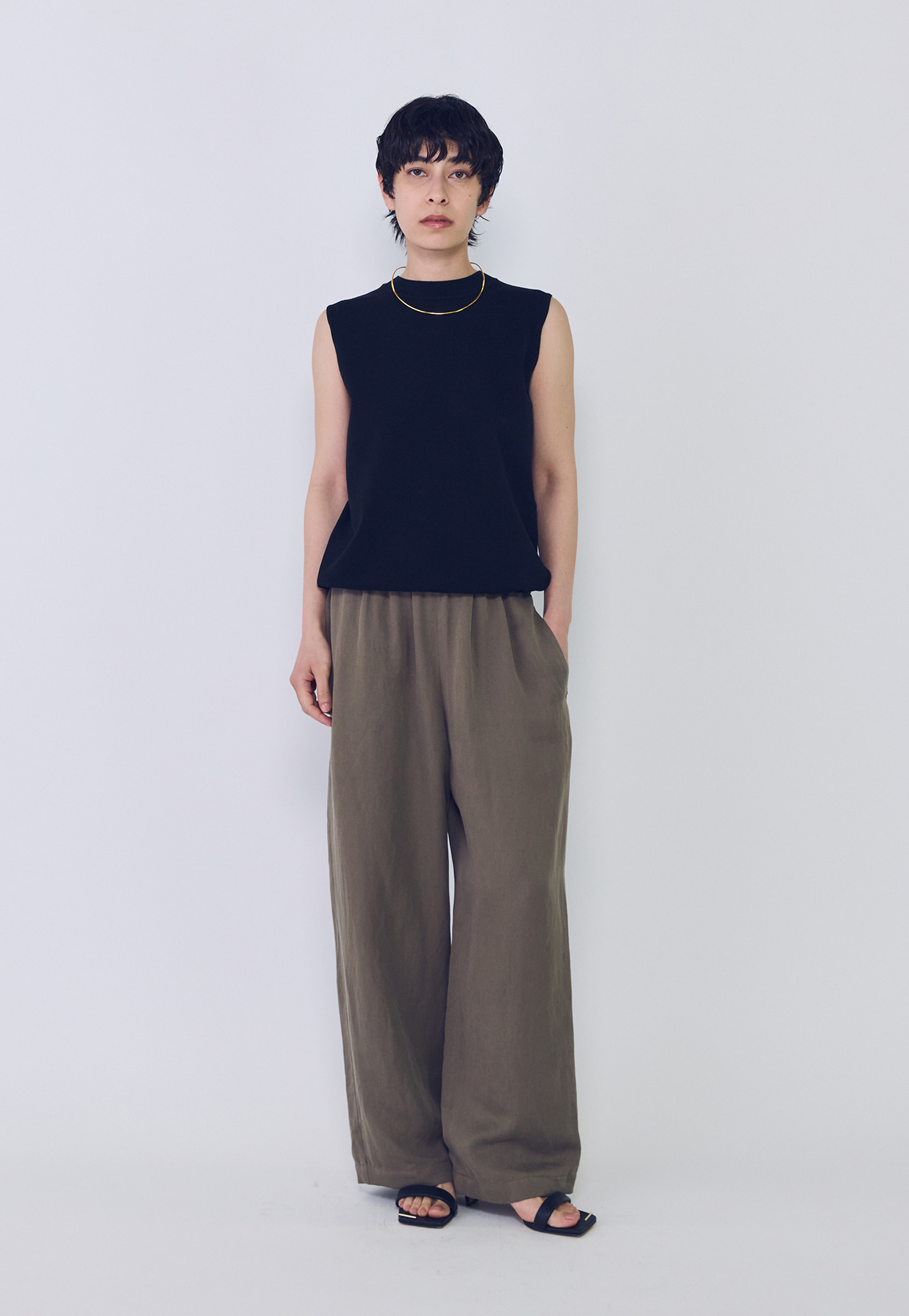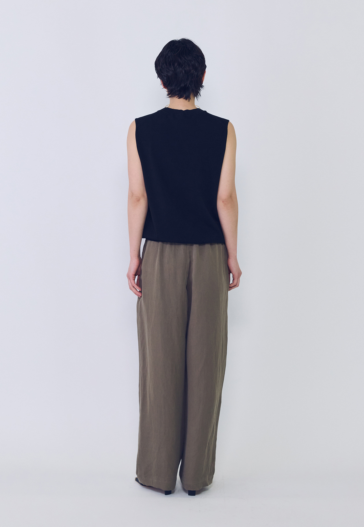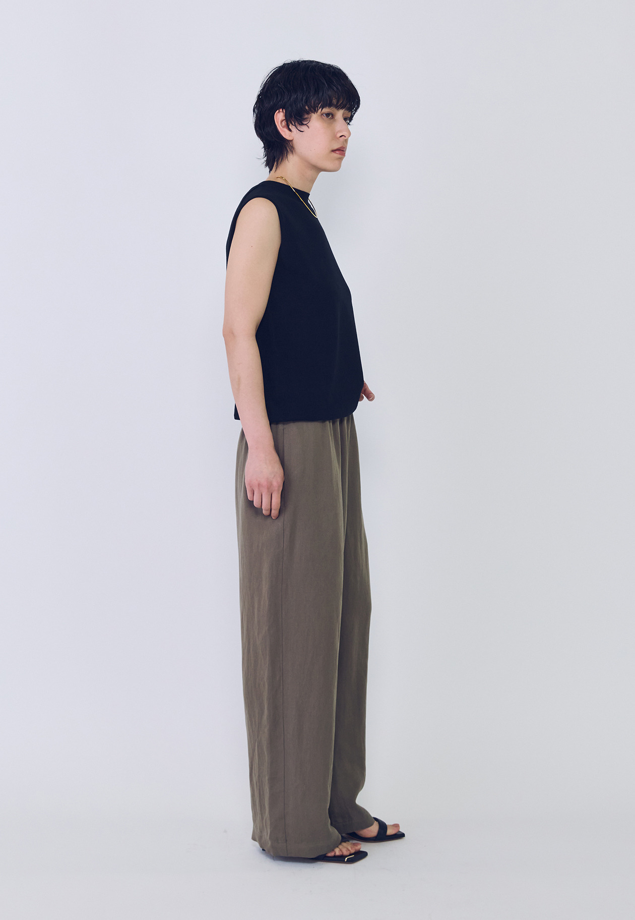 程よい光沢感とスラブ感のあるテンセルリネン素材を使用したワイドパンツ。