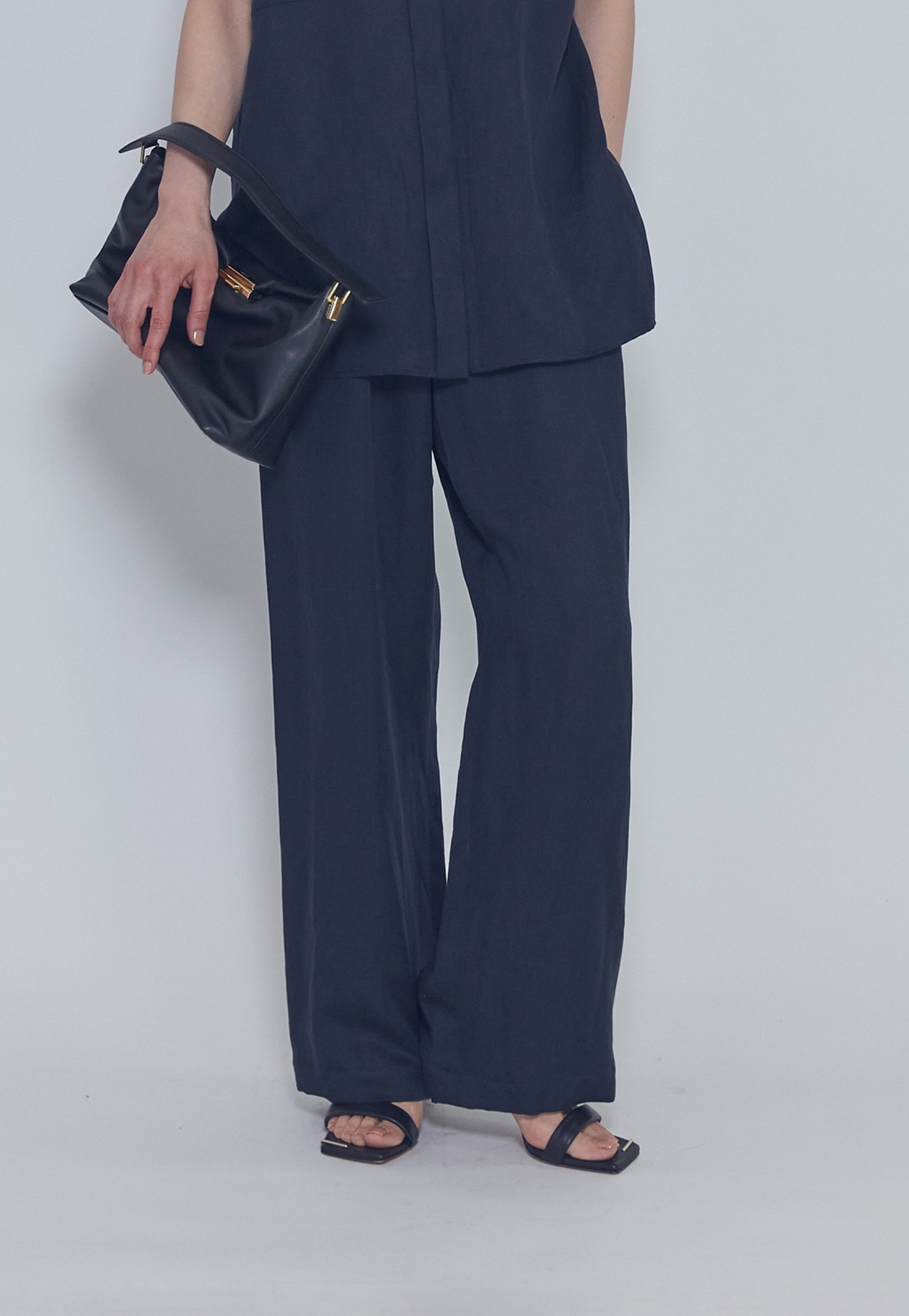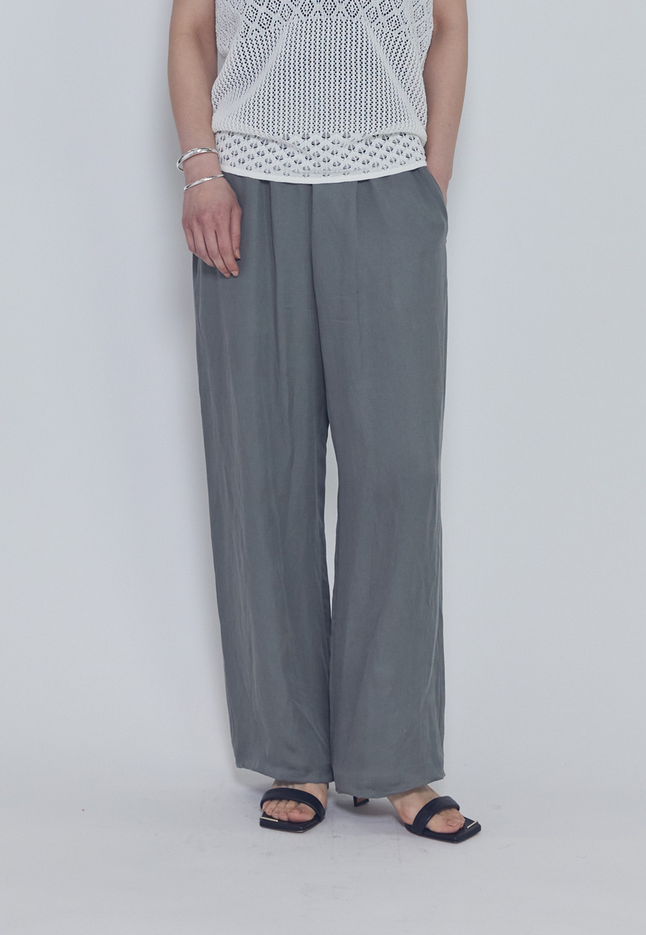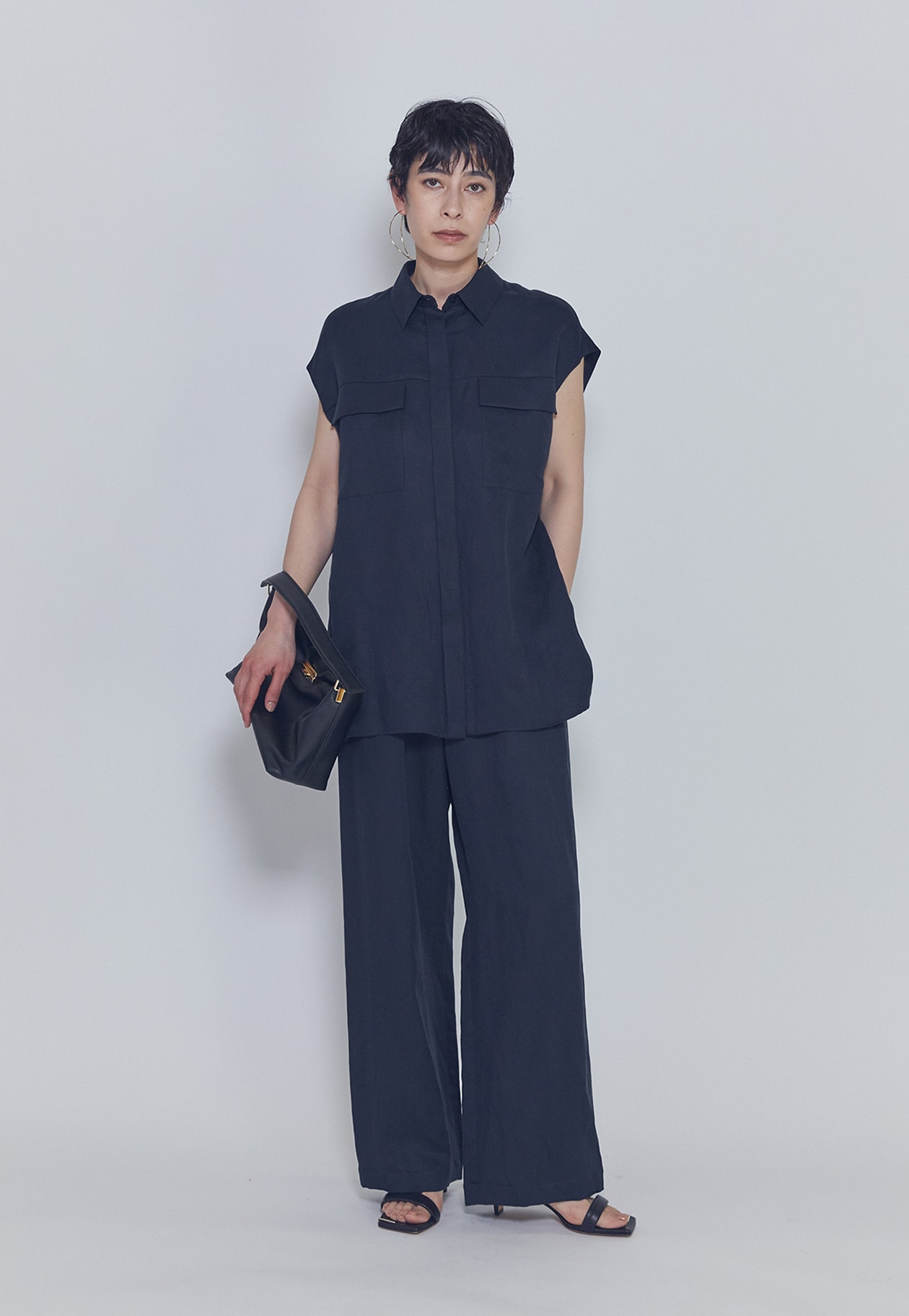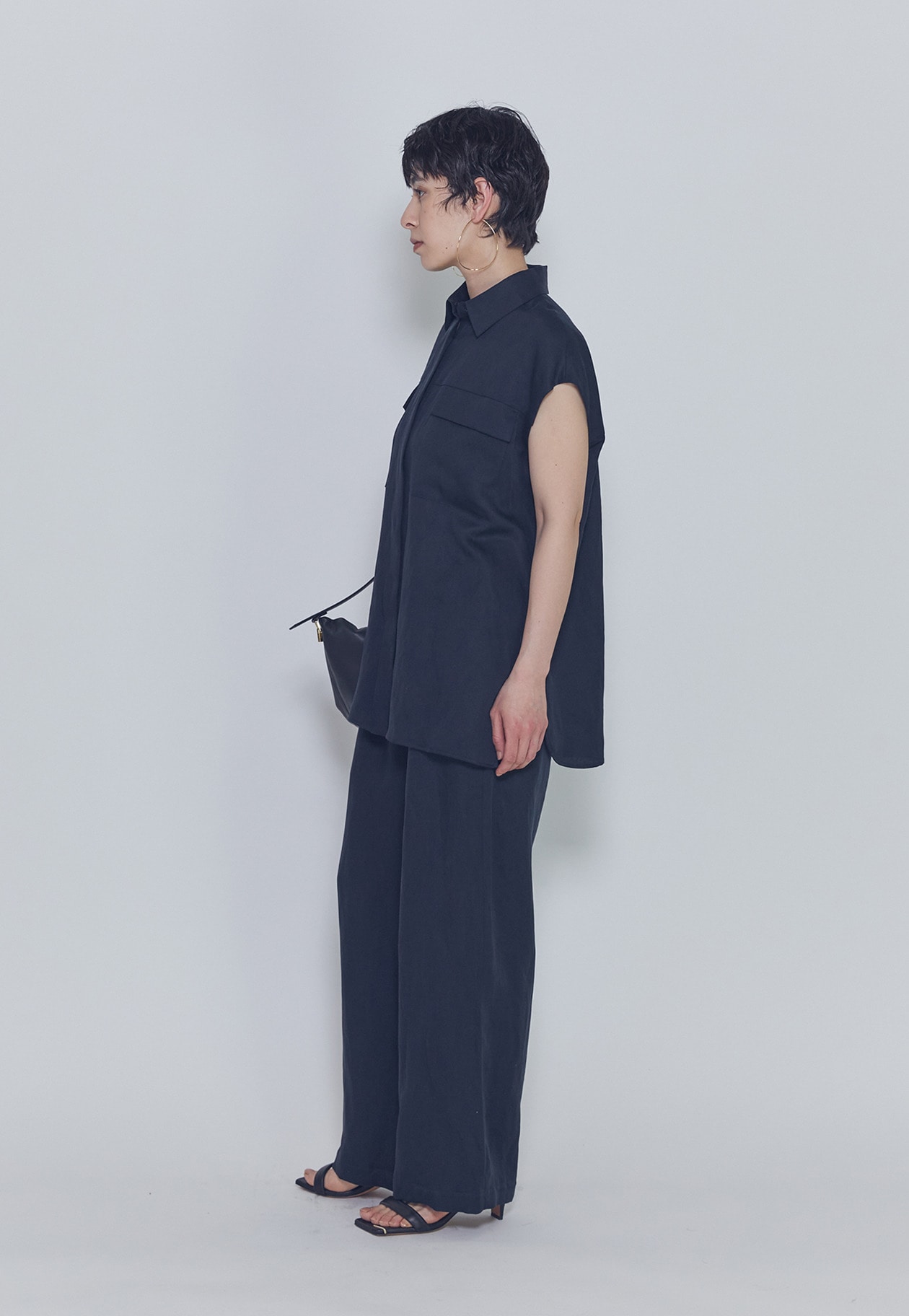 程よい光沢感とスラブ感のあるテンセルリネン素材を使用したワイドパンツ。