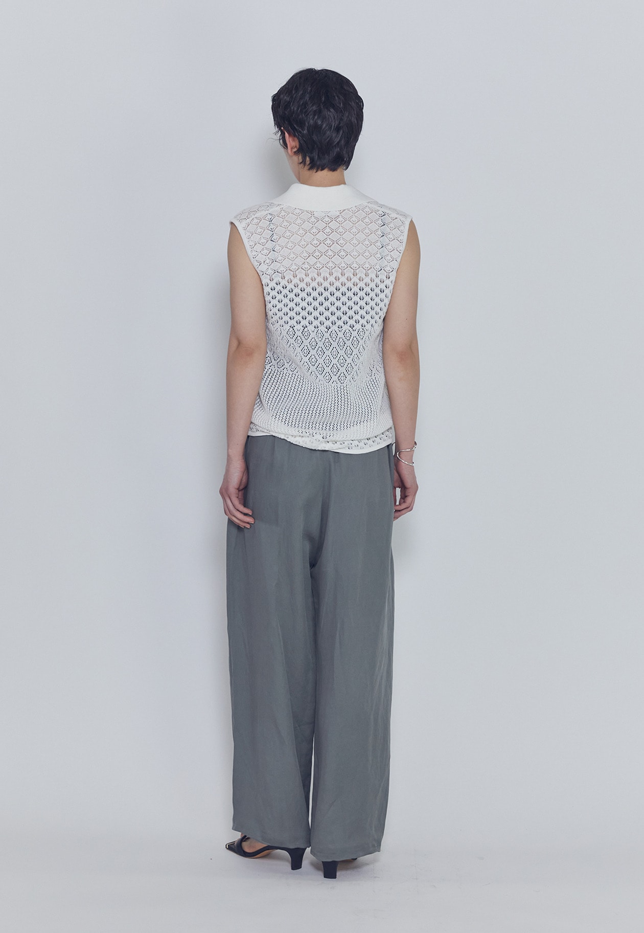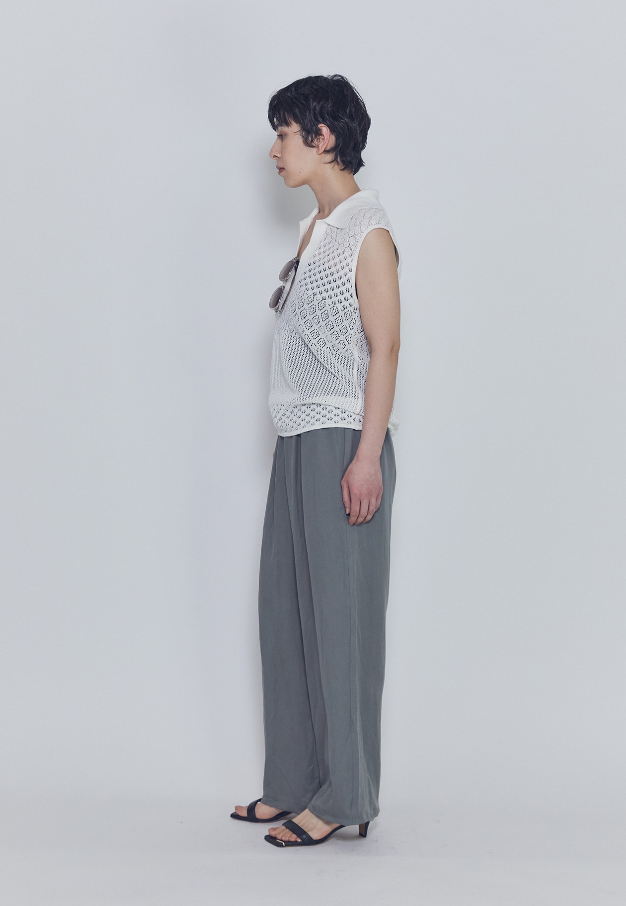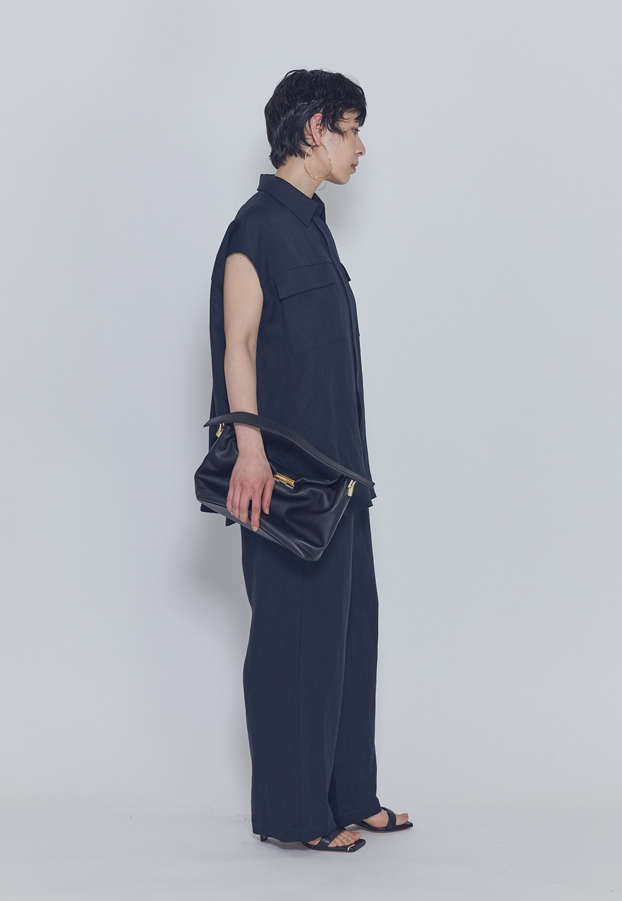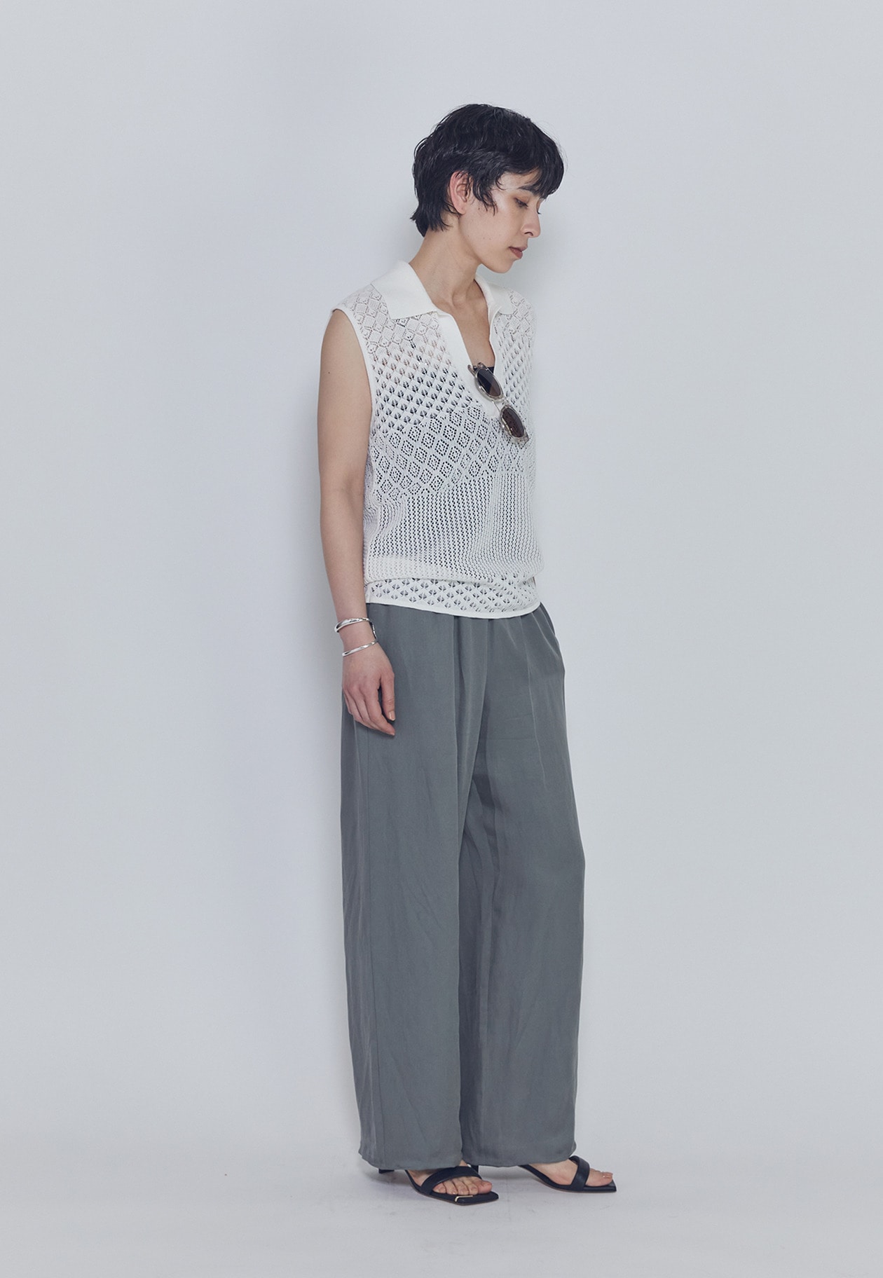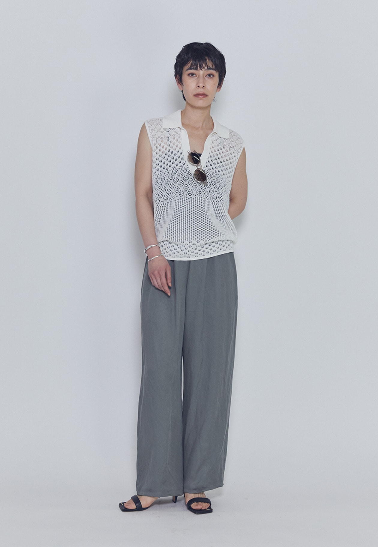程よい光沢感とスラブ感のあるテンセルリネン素材を使用したワイドパンツ。
