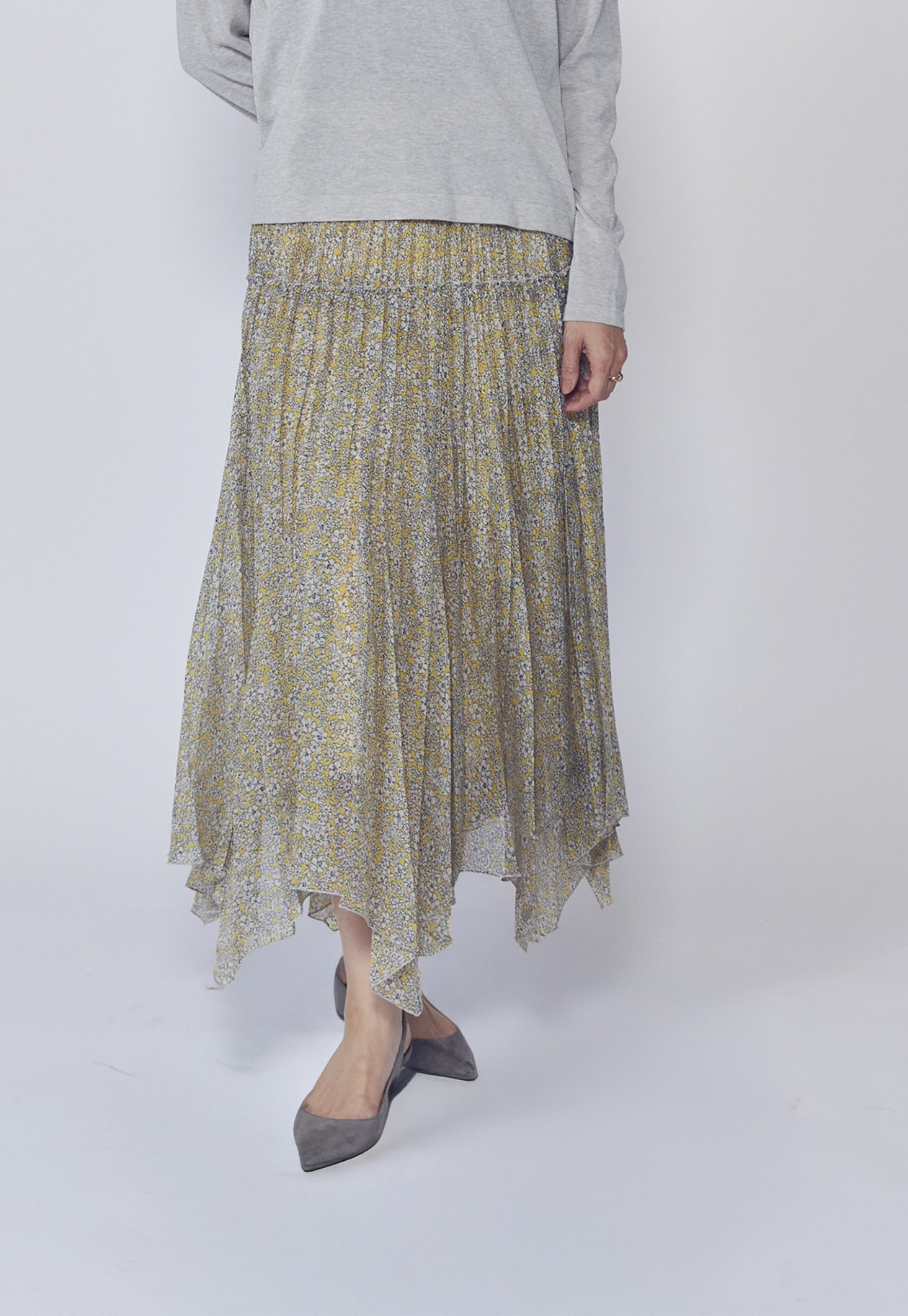 幸せの象徴・ハチドリを忍ばせた、軽やかなプリーツスカート。