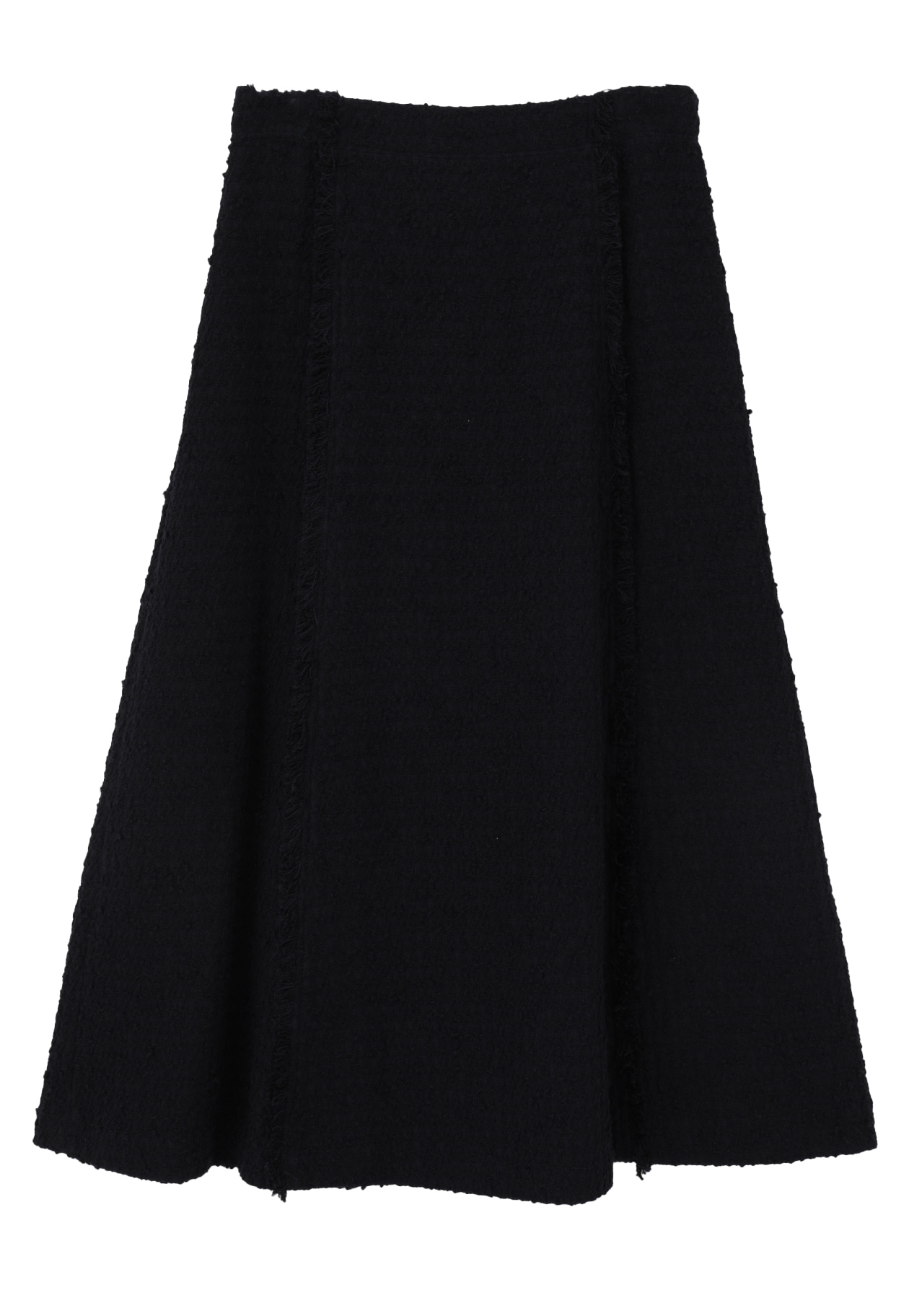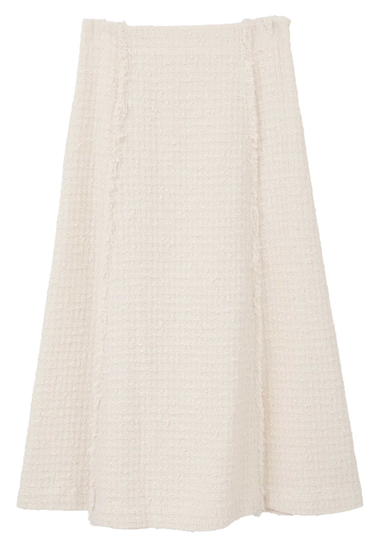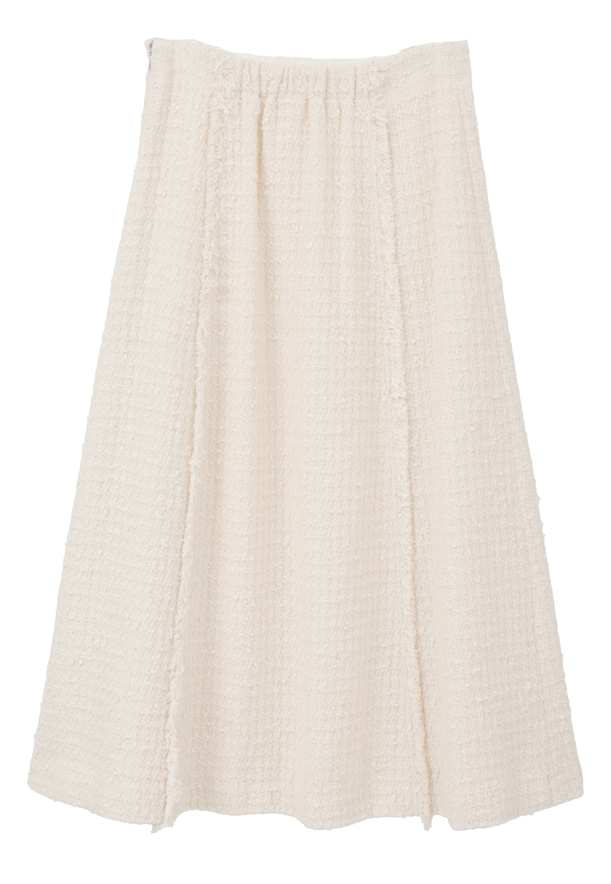 上品なフレアシルエットに、縦にあしらったフリンジがアクセントとなるAラインスカート。