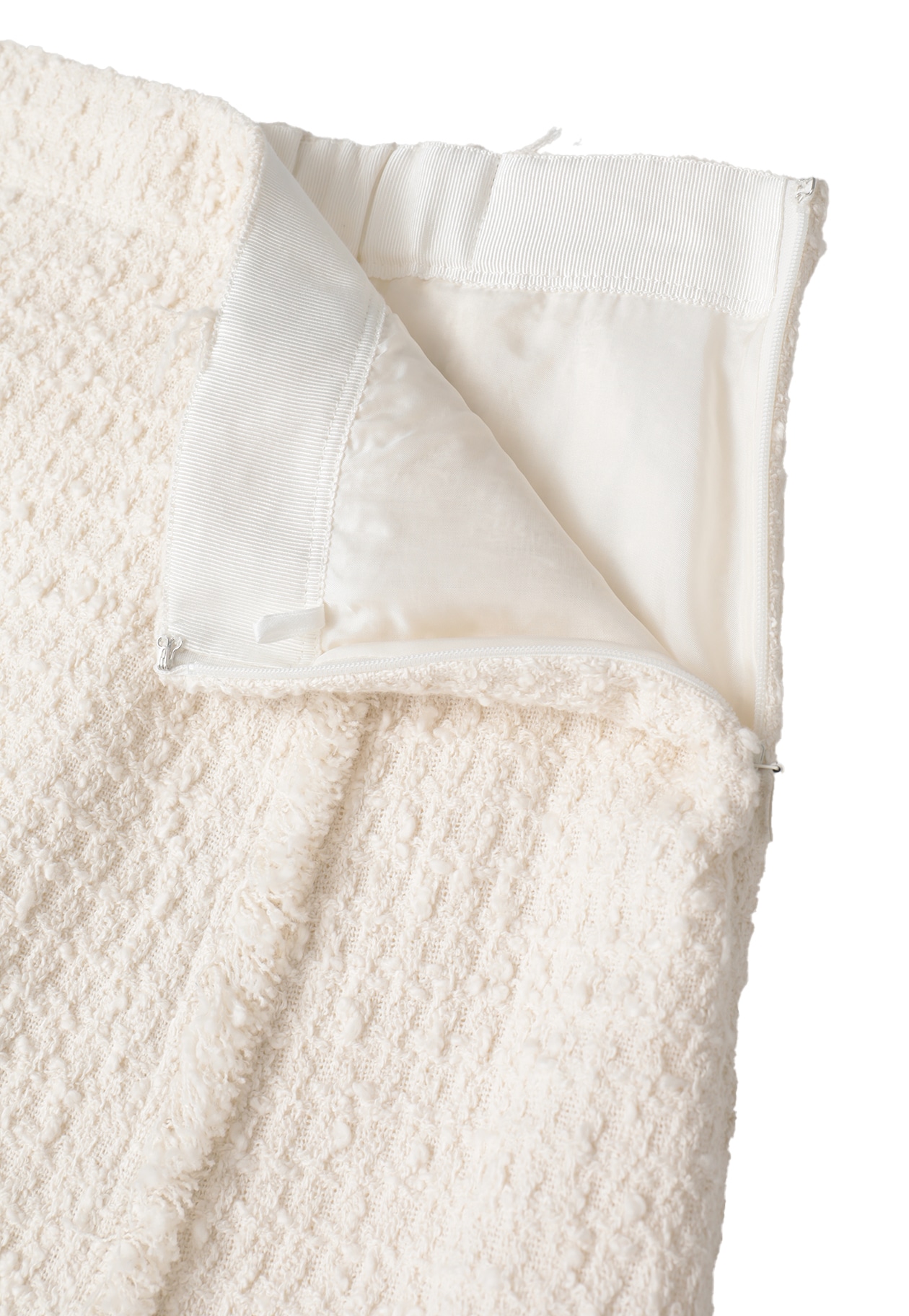ウエスト内側にはグログランリボンを配し、細部まで品よく仕立てています。