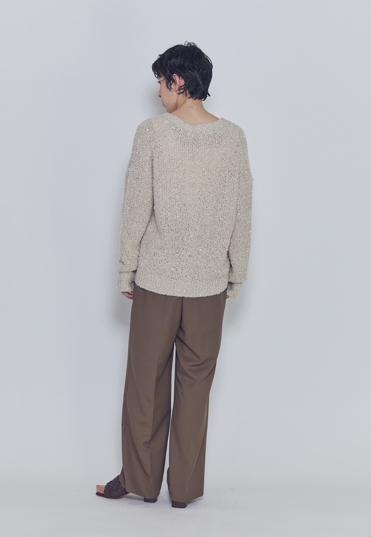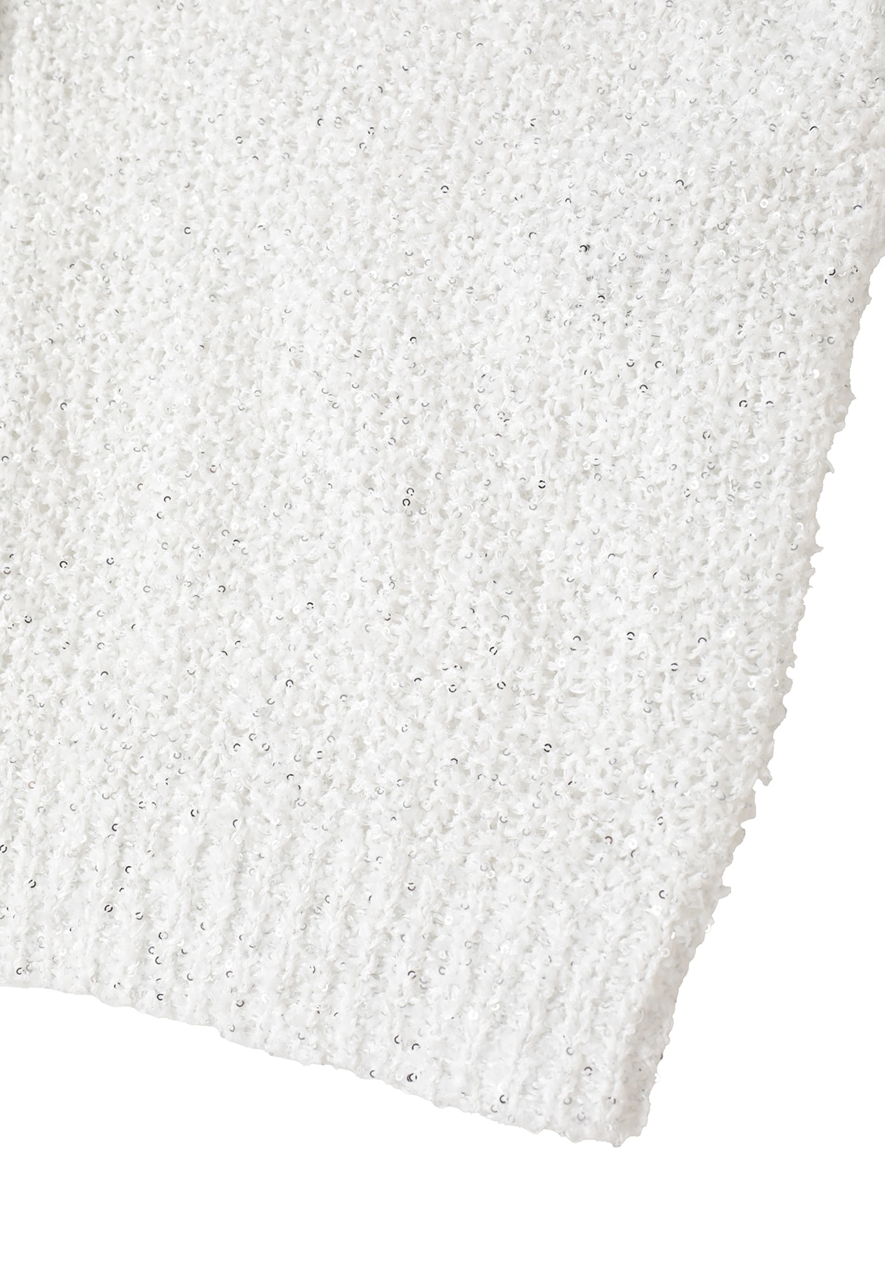 フサフサとしたファンシーヤーンをベースに、スパンコールとブライト糸を引き揃え、