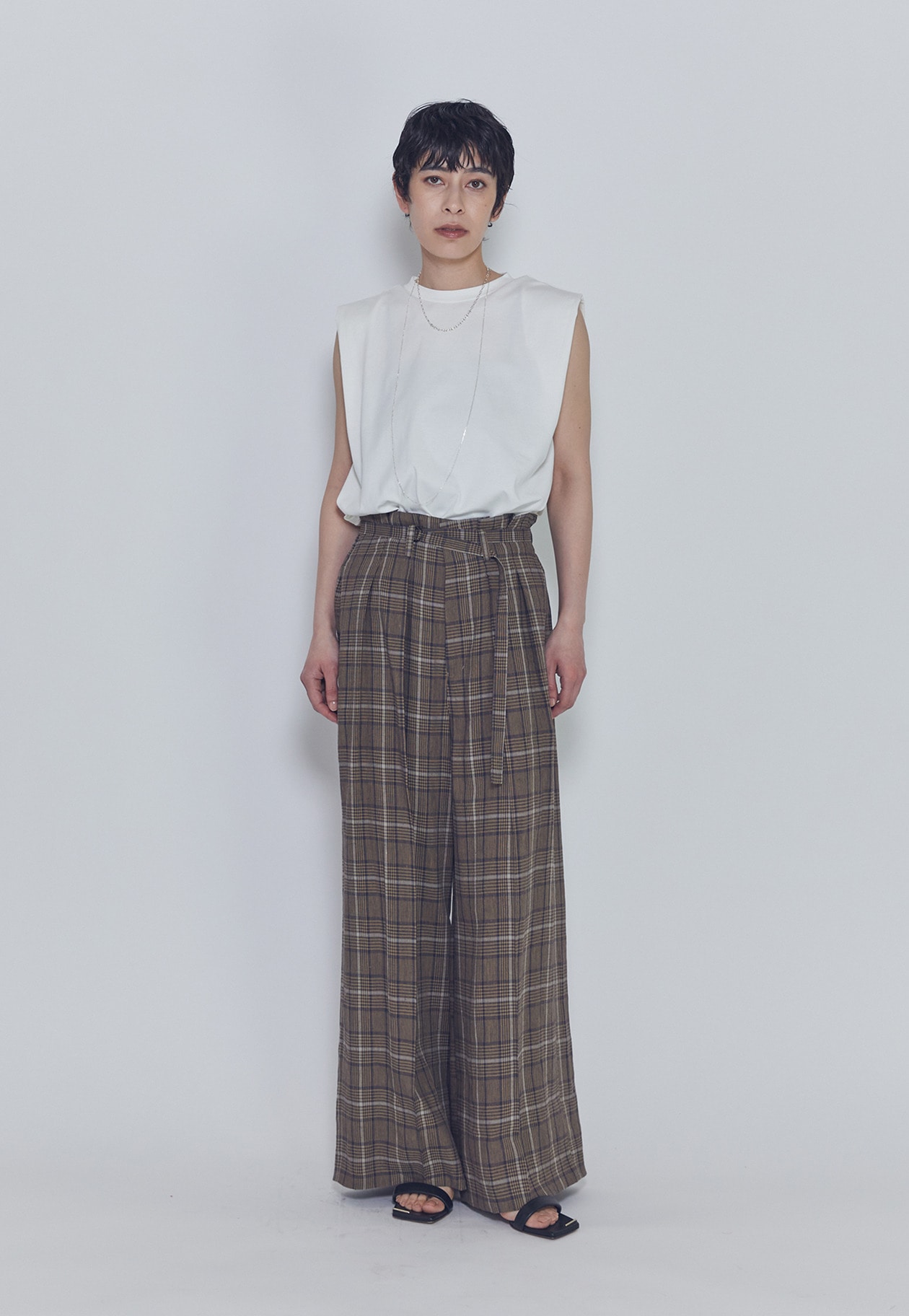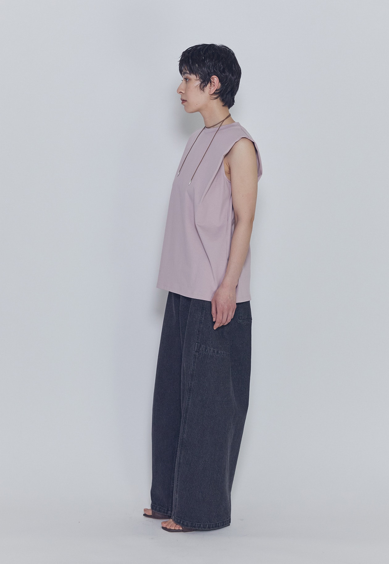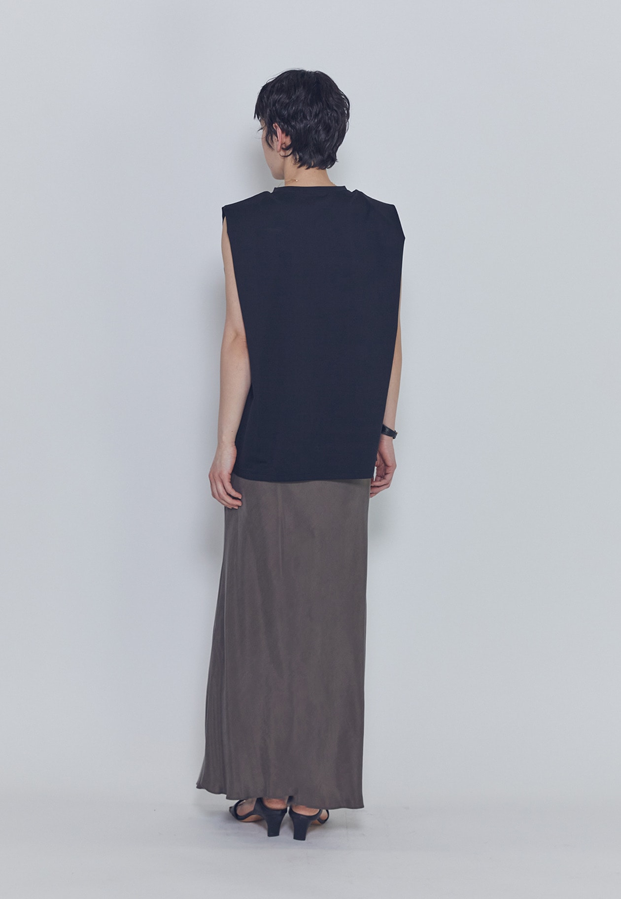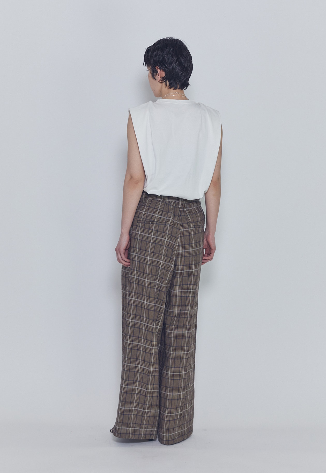 肩にタックを施したさりげないパワーショルダーデザインが、モードでカジュアルな印象を演出します。