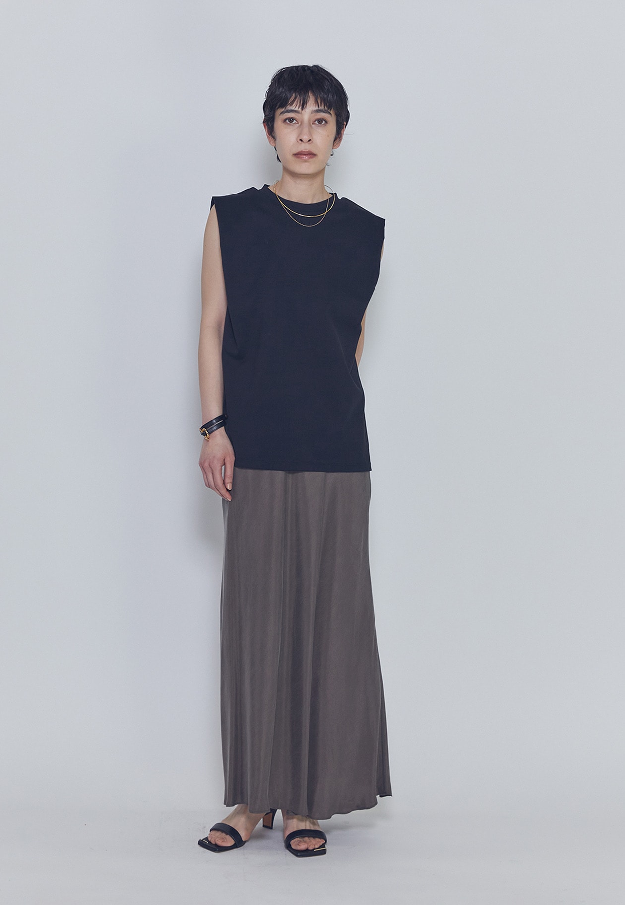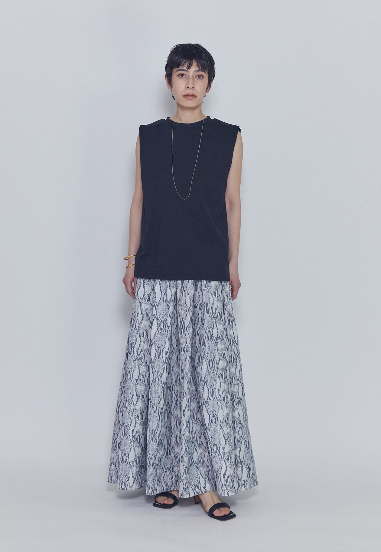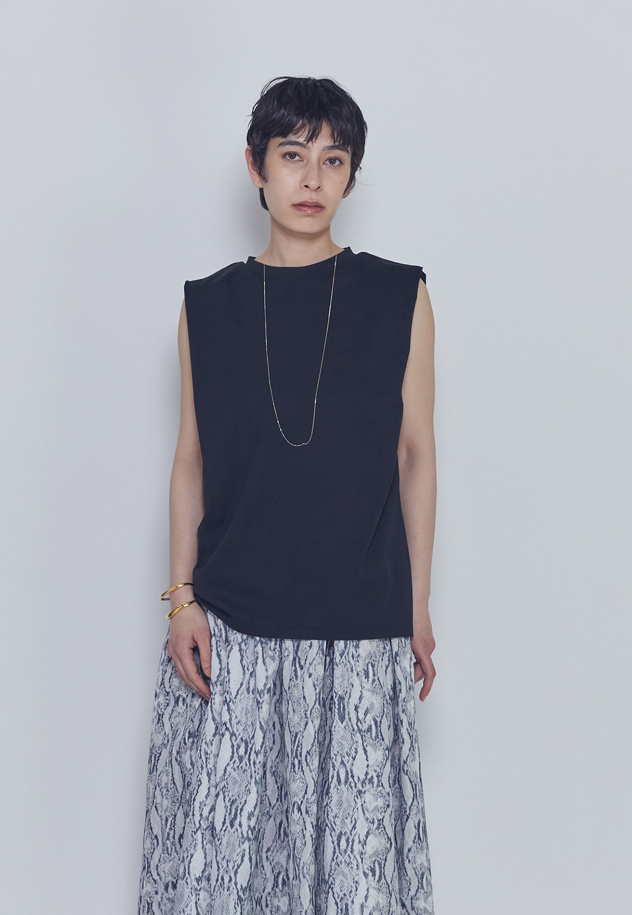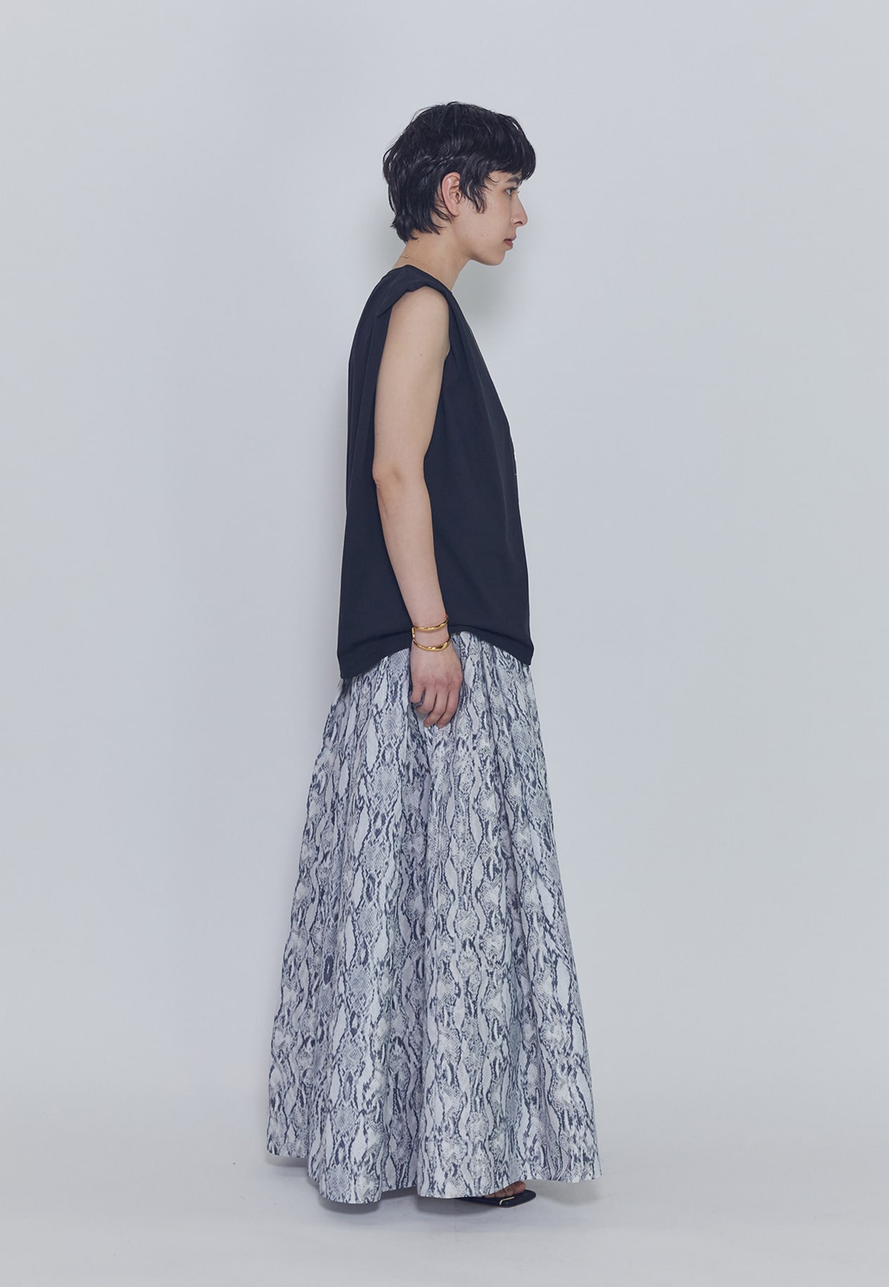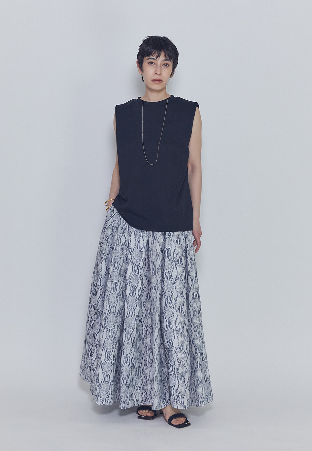 フェミニンなスカートと合わせても、程よく辛さをプラスしたバランスのよいスタイリングが楽しめる一枚です。
