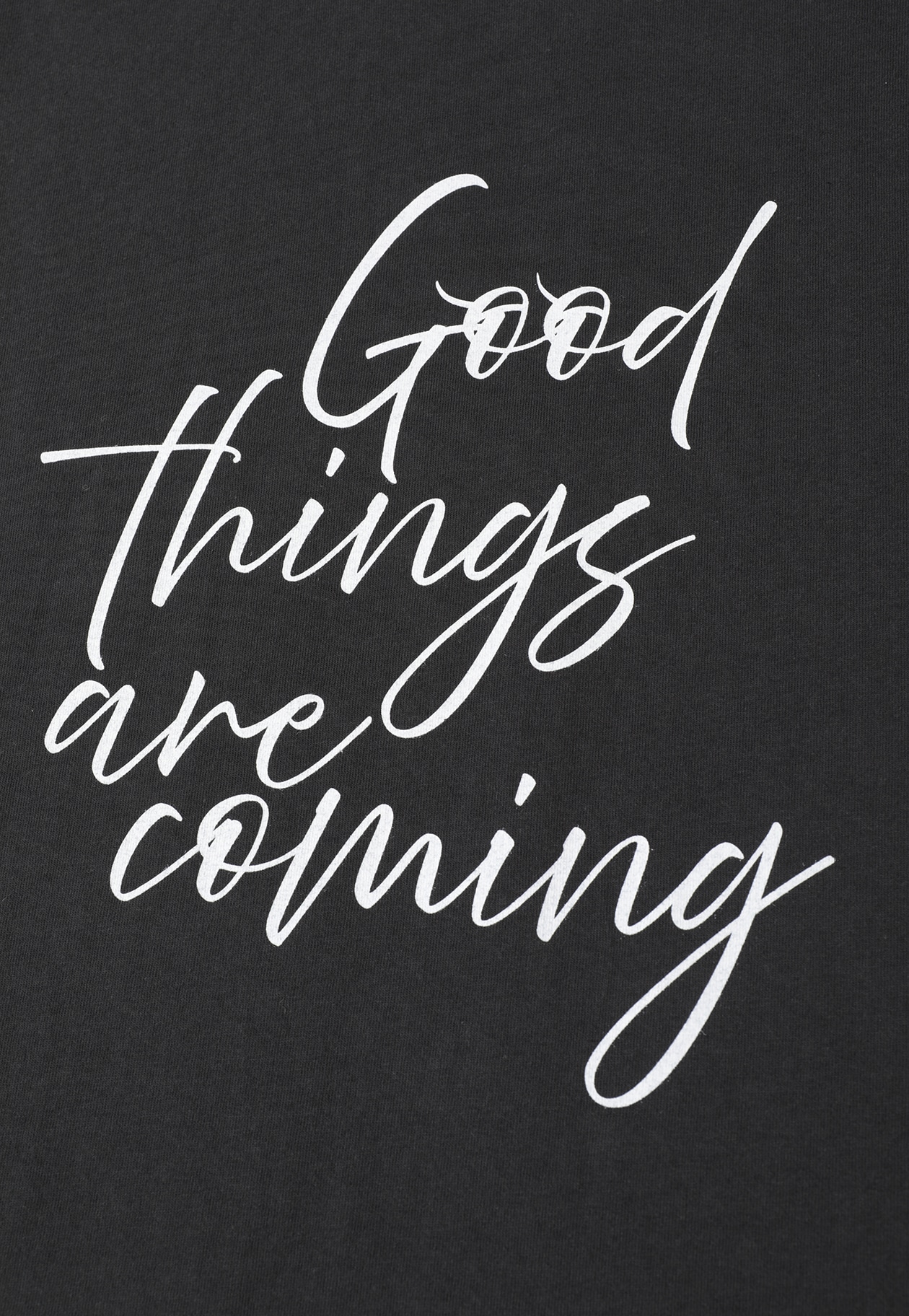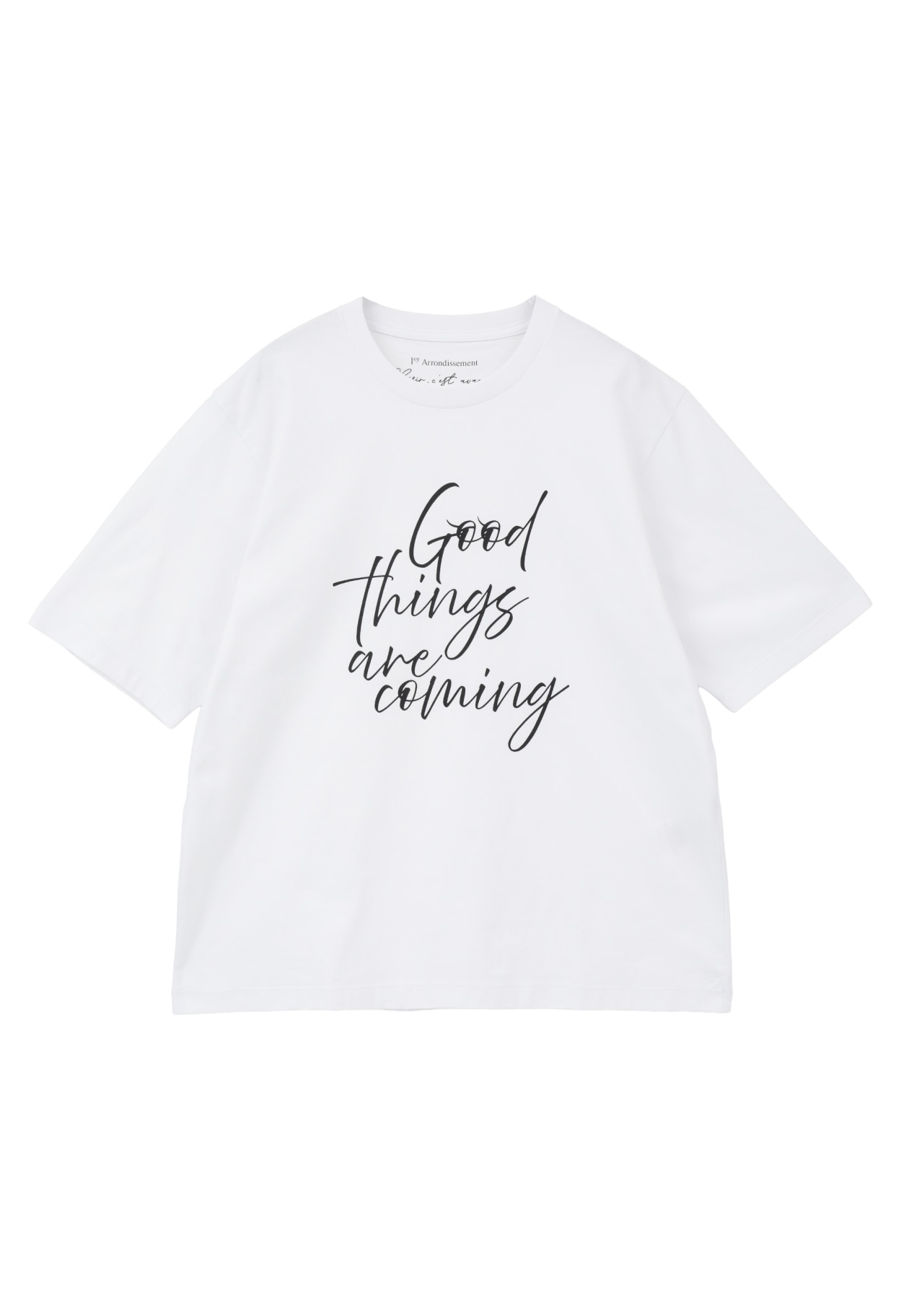 フロントには「Good things are coming(良いことが起こる)」のメッセージを筆記体で表現し、