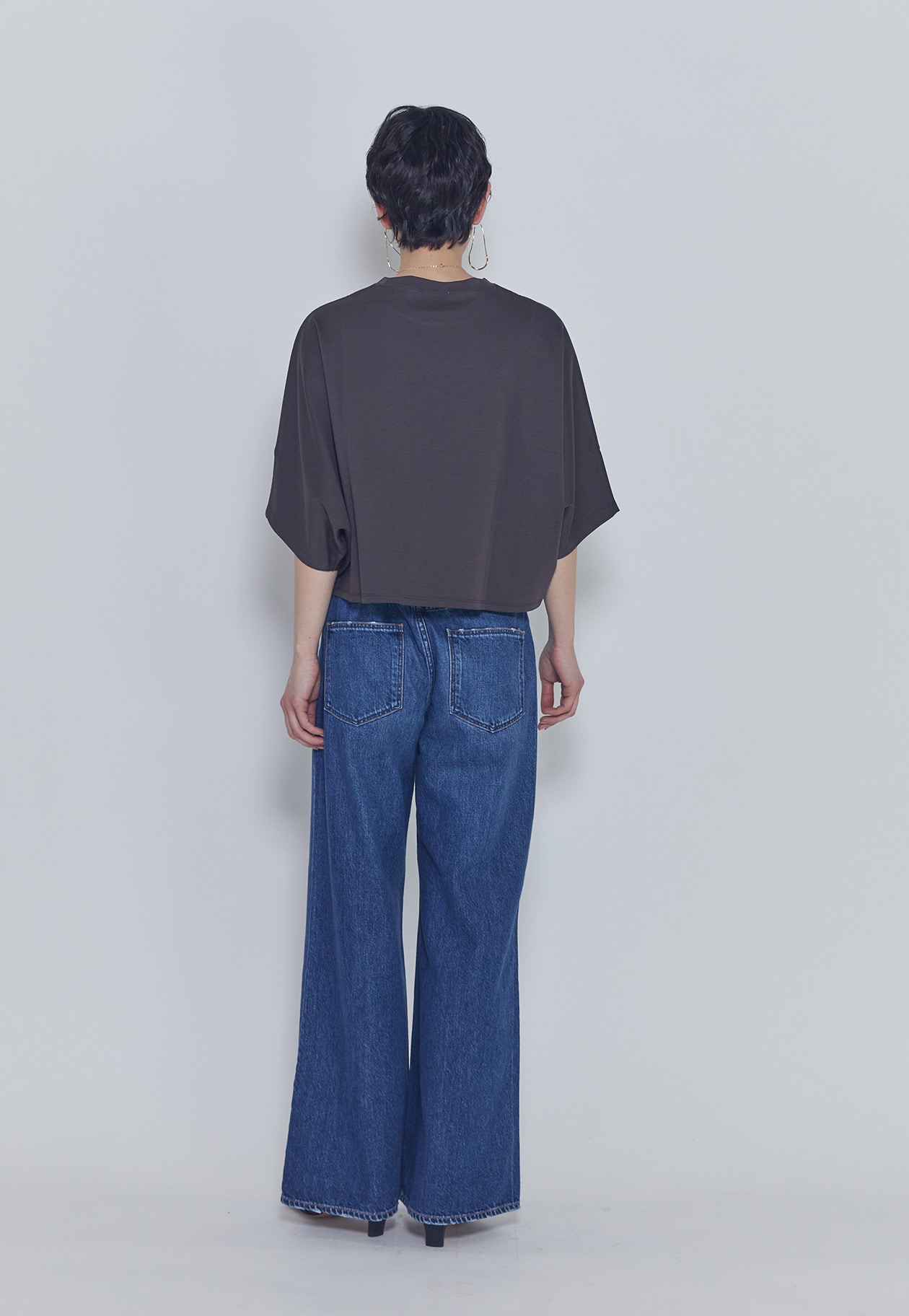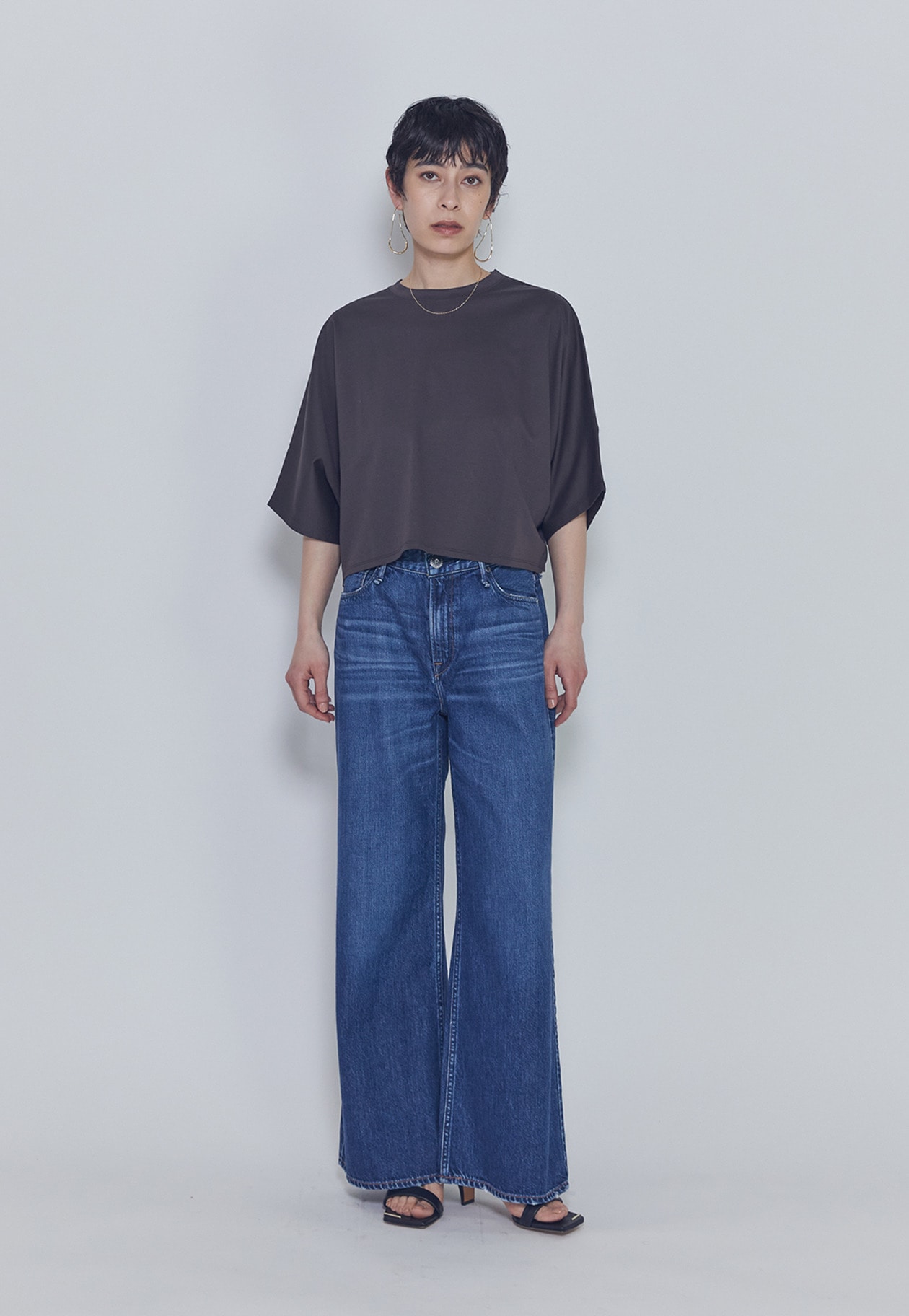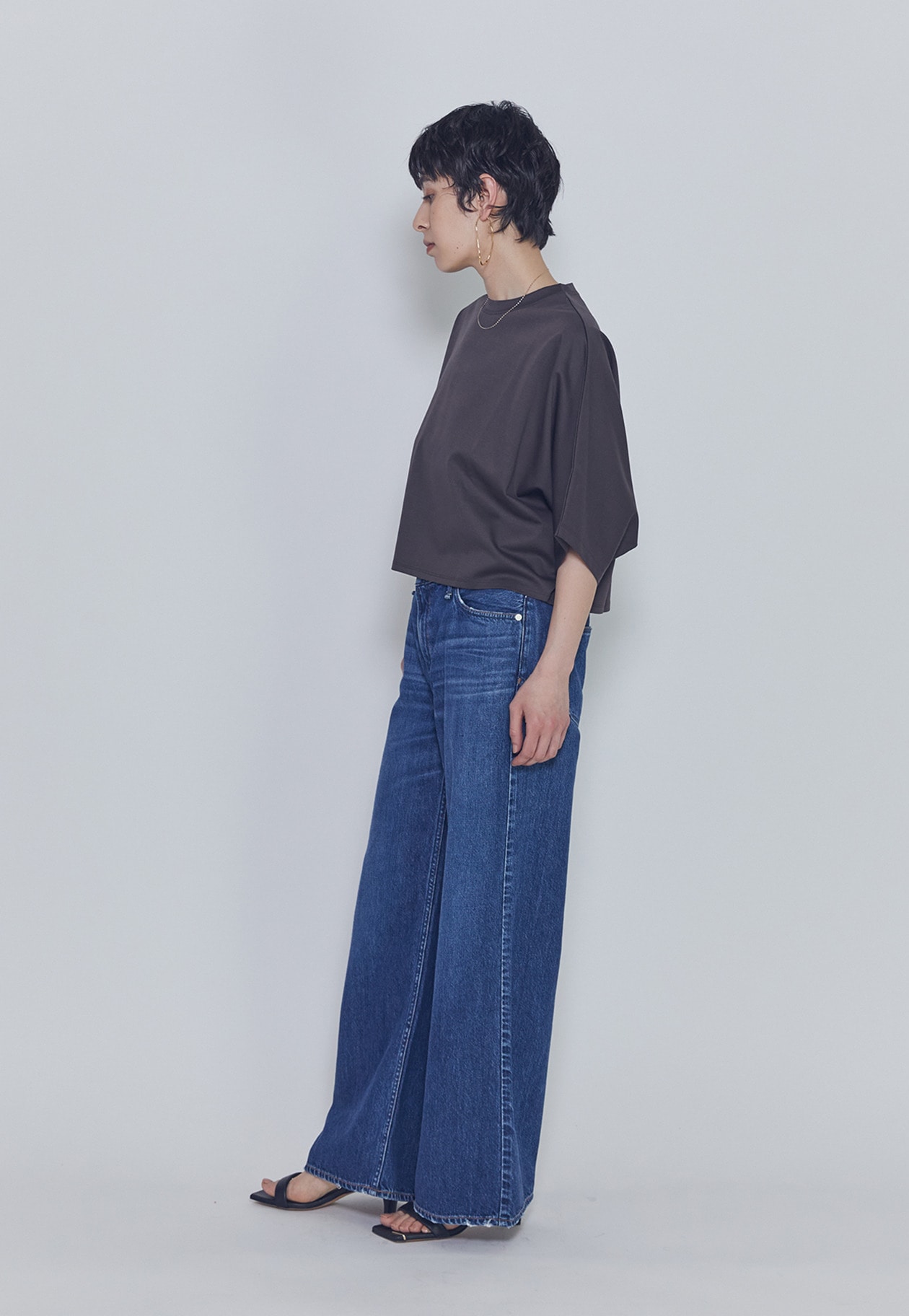 開きすぎないクルーネックとゆったりとしたドルマンスリーブ、程よいクロップド丈で、さりげないトレンド感をプラス。